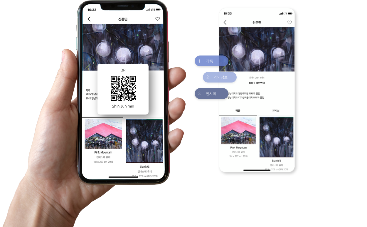 ※ 아트맵에서 링크되는 작품 포트폴리오입니다. 사용자는 큐알을 통해 작가의 상세정보, 전체 작품을 감상하실 수 있습니다.