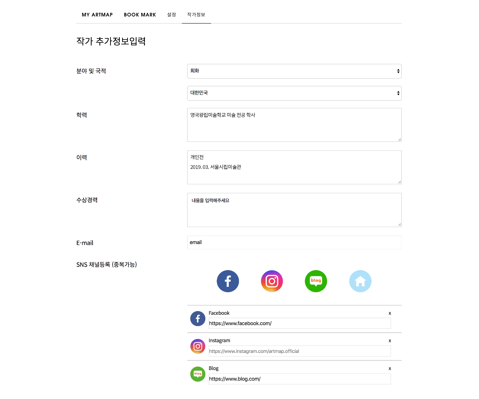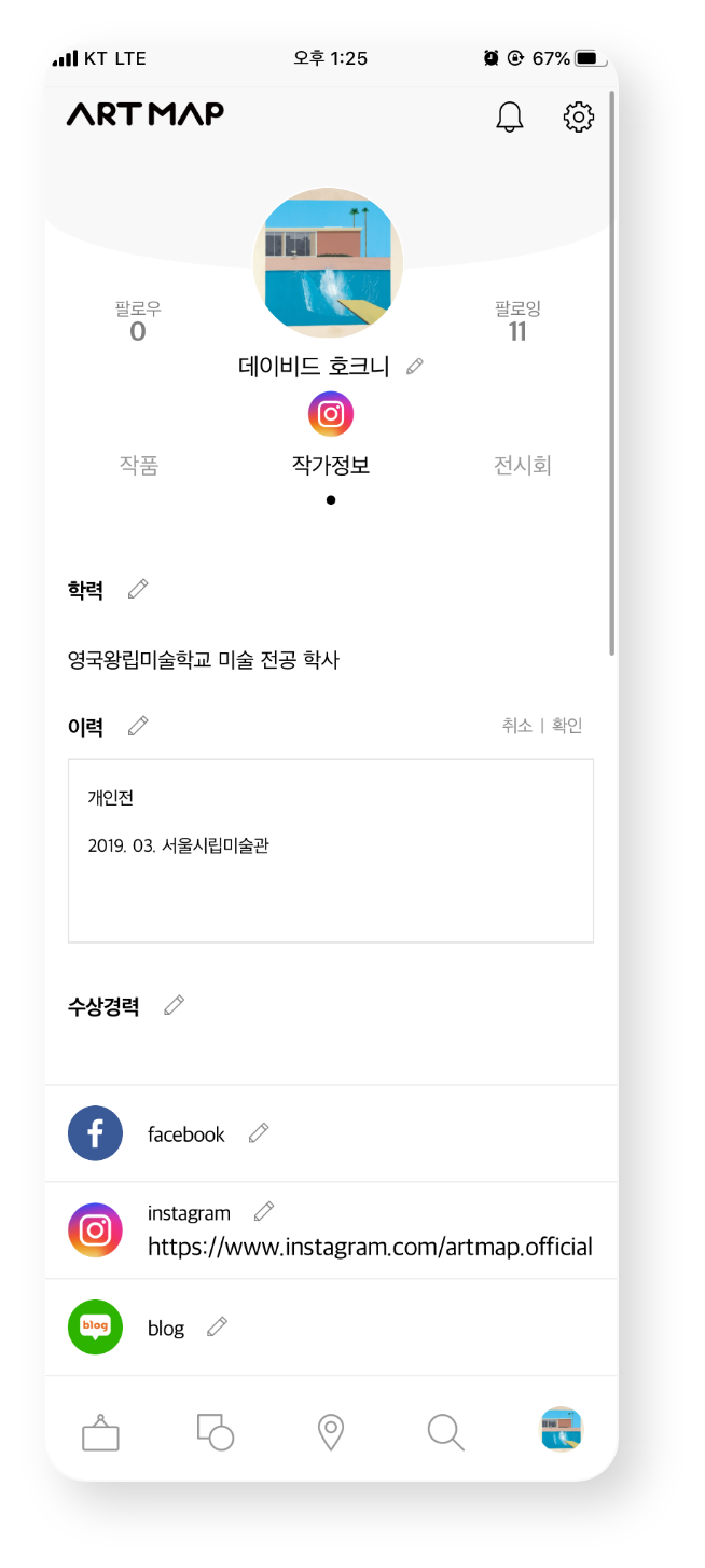 아트맵 - 마이페이지에 등록된 작가님의 정보를 QR코드에 담아 드립니다.