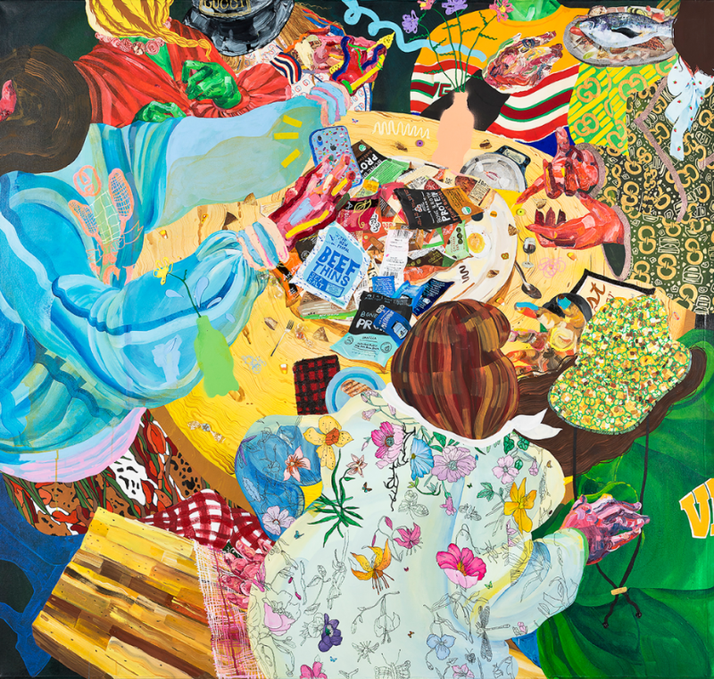 가나아트 사운즈는 전통적인 정물화를 현대적으로 재해석하여 선보이는 니콜 다이어(Nicole Dyer b. 1991-)의 개인전 《I HAVE IT ALL》을 개최한다. 이번 전시는 니콜 다이어의 국내 첫 개인전으로서, 그리고 아시아 첫 개인전으로 의미가 크다. 니콜 다이어는 2013년 메릴랜드 예술대학(MICA)을 졸업하고, 약 12년간 볼티모어를 기반으로 활동하다 최근 뉴욕으로 거주지를 옮겨 활동을 지속하고 있다. 2020년 아트시(Artsy)는 니콜 다이어를 정물화를 재해석하는 주요 현대 미술가 중 한 명으로 선정한 바 있으며, 주목받는 신진작가로서 다이어는 올해 상반기에만 시카고, 뉴욕, 샌프란시스코 등에서 개최된 다수의 전시에 참여하며 활발한 활동을 이어가고 있다. 최근 그는 소셜 미디어, 웹사이트 등을 통한 정보의 과잉 소비와 대중문화 등을 탐구한 결과를 정물화 기법으로 구현하며 디지털 사회와 대중소비사회 문화의 역기능을 추적하고 있다. 이번 개인전은 그의 근작을 국내 최초 공개한다. 여행 중 우연히 마주친 바니타스 회화에 매료된 니콜 다이어는 이를 현대적인 언어로 차용해 몇 세기 전 사람들이 겪었던 과욕과 과용의 문제가 오늘도 변함없이 이어지고 있음을 말한다. 그의 화면 안에 꽉 들어찬 사물들은 하나같이 먹음직하고 보암직하다. 그러나 하나씩 떼어 보면 잠깐의 만족만 줄 뿐 결코 인간에 이롭지 못한 것들이다. 또 하나의 특징적인 요소는 얼굴을 드러내지 않는 인물들이다. 등장인물들은 회화 속 공간을 함께 점유할 뿐 각자의 세상에 골몰한 모습이다. 오늘날 우리가 살고 있는 이곳에서도 흔히 만날 수 있는 그러한 풍경은 동시대인들이 호소하는 ‘군중 속 고독’을 현시한다. 니콜 다이어의 작품을 가득 메운 사물과 인물이 익숙하게 느껴지는 까닭은 그가 지금-여기를 충실하게 재현하기 때문일 것이다. 재기 발랄한 색감과 조형성 속에 깊은 사유를 품은 다이어의 작품을 통해 혹시 오늘 우리도 너무 많은 것에 휩쓸려 균형을 잃고 사는 것은 아닌지 되돌아보는 계기가 마련되기를 기대한다. (출처= 가나아트사운즈)