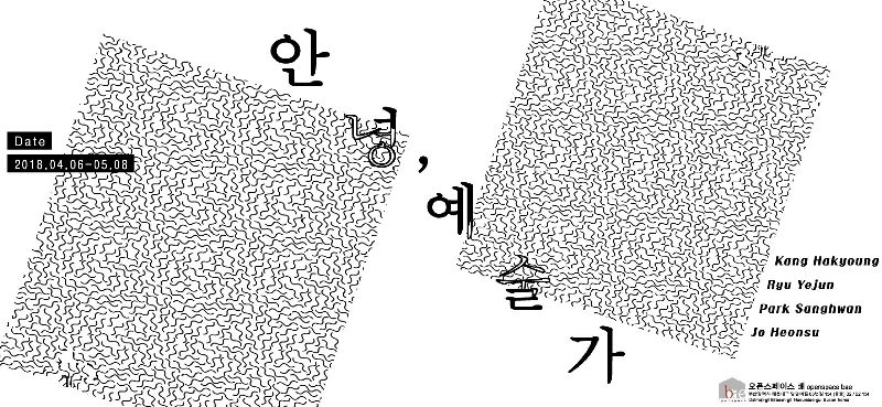 강하경의 작업을 볼때 주로 인물을 대상으로 기억,시간 특정순간(자신의이야기)바탕 으로<잔상>,<일지록>작업에서 보여주고 있다.강하경은 기억이란,단지 특정 순간의 것 이 아니라 우리 의 생각이 섞여 움직이고, 이것이 기록으로 서의 작업들이 때론 유희가 되기도한다.강하경은 유년시절 중 서예를 하시던 아버지 밑에 자라 면서 자연스럽 게 먹과 종이를 이용하여 인물을 드로잉하는 작업을 진행하였다. 강하경 에게 먹드로잉은 시각적 재현으로 부터 자유로움을 갖게 해주 었고,작품제작 에서도 드로잉 특유 의 자유로움 을 적극 이용하여 표현 하였다.작가의 기억이란 단지 특정 순간 의 것 이 아니라 이후 의 어떤 시점 과 우리 의 판단 이 섞여 움직이고 살아있는 것 이라고 작가는 말한다. 특히 강하경 의작업에서 보면 사람들의 얼굴 혹 은 모습을 먹으로 찍 듯이 그린 작가 의 그림 은 흥미 롭게 도 앤디워홀 의 반복 된 이미지 와 같은 인상을 보여 주고 있다. 류예준 작가 의<부유하는섬>,< dally in bed >영상, 설치 작품이 전시장 한 가운데 에 메워져 있다.류예준은 현실 세계 에 있을 법한 상황들 을 헤테로토피아를 비롯해 자신과 제3자들에게 조금 이라 도 위안 과 휴식을 느낄 수 있게 해준다. 그녀의 작업은 일상 삶에 있어서 영원히 벗 어날 수 없는 굴레속 에서 꿩이 머리 만 풀에 감추 듯, 일상으로 부 터의 도피는 언제나 불완전 하다. 그녀의 작업은 비현실과 현실 의 경계를 넘나들며 환상적 이미지들 을 마주하 게 된다. 잠시나마 답답한 현실을 잊고 성별을 알 수 없는 인체에 자신을 대입하면서 현대 사회인 들 의 부조리를 꼬집어 볼 수 있는 시간이다. 조현수 의<竹林 #1>와<竹林 #2><竹林 #3>라는 평면 작업과 박상환 의< the same crowd >,< social disability >라는 설치,영상을 통해 청년 작가들 의 각기 다양한 스토리를 보여주고 있다.박상환은 대인관계에 대한 결핍들을 본인 자신을 무채색(흰색,블랙)으로 부터 보호하였고, 실행적 리얼리즘에 대해 현대인들의 사회적 부조리나 비판을 일깨우고자 하였다. 조현수는 <竹林 #1>와<竹林 #2><竹林 #3>를 통해 매체 연구와 물성,에 대해 표현하고자 하였다. 작가는 작업의 과정을 중요시 여긴 다고 한다.이유는 즉 다양한 재료로 금속으로 작업하던 도중 시간과 날씨 계절 등 여러 가지 요소로 인해 자연적으로 색이 바래지고 표면이 부식 되면서 변화하는 과정을 통해 사군자<인간>의 삶을 재해석 해 주고 있다. 참여작가 강하경, 류예준, 박상환, 조현수, 안녕 예술가
