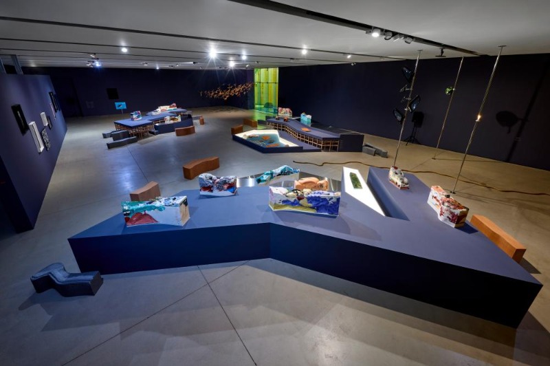 우선 임민욱은 하찮은 것과 고귀한 것, 성스러운 것과 세속적인 것 등 상반된 가치로 여겨지는 부분들을 ‘절합’하여, 고착화를 지연시키고 그 빈틈을 응시할 수 있는 작동 모델로 교대를 상정한다. 이를테면 서울시립 북서울미술관 옆에 위치한 별 광장에서 927년 신라 시대 어느 하루, 제식이 중단되고 언어가 멈춘, 빛과 어둠이 겹쳐지는 ‘개와 늑대의 시간’을 떠올려 본다. 전복의 모양을 본떠 만들었다는 포석정의 석축 구조를 빌려와 틀을 만들고 기억의 사물과 물질로 채운 뒤 다시 해체해서 단면들을 보여준다.