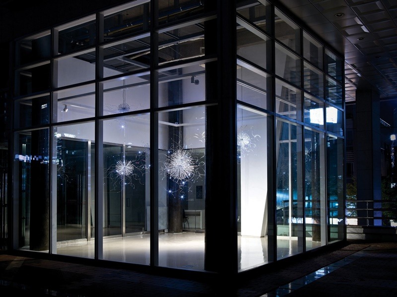 관람일정 : 2021. 10. 15.(금) ~ 12. 26.(일) ※월요일 전시 없음 관람시간 : 10:00~13:00, 14:00~17:00, ※ 사전 예약제(053-661-3526, 3517) ※ 코로나19 대응과 관련하여 전시관람 사전예약제를 운영하고 있으며, 홈페이지에서 관람 시간 확인과 사전 예약을 하실 수 있습니다. 작가와 만남과 워크숍은 코로나19로 확산방지로 진행하지 않음 장 소 : 봉산문화회관 2층 아트스페이스 코디네이터 : 최시원 cswcc0512@naver.com 기 획 : 봉산문화회관 문 의 : www.bongsanart.org, 053-661-3500 페이스북(bongsanart), 인스타그램(bongsanart_), 트위터(@bongsanart) 전시 소개 봉산문화회관의 기획, 「유리상자-아트스타 2021」전시공모선정 작가展은 동시대 예술의 낯선 태도에 주목합니다. 올해 전시 공모에서 언급하는 ‘헬로우! 1974’는 1974년 10월부터 1979년 7월까지 개최된 “제1~5회 Contemporary Art Festival DAEGU” 전시에 참여한 작가들의 실험적인 태도를 기점으로 현재에 이르는 대구의 실험미술(Contemporary Art), 특히 설치미술의 일면을 소개하며 ‘다른 미술의 가능성’을 재고再考하려는 것입니다. 그리고 1974년에서 2021년으로 이어질 설치미술 관련 태도의 연결 기반이 ‘실험’과 ‘신체 행위’, ‘몰입’이며, ‘실험’적 태도를 생육해 온 서식지로서 여기, 지금 이곳을 다시 인식하려는 주제입니다. 유리상자의 전시 방식은 전시공간 밖에서 관람객이 안을 관람할 수 있도록 설계되어 있으므로 유리를 통하여 24시간 관람이 가능하다는 점 때문에 항상 찾을 수 있는 도심 속 생활 예술 공간으로 소개되고 있습니다. 이 ‘유리상자’ 기획프로그램은 봉산문화회관이 시행하는 젊은 작가 지원프로그램의 일환으로 진행되고 있으며, 전시의 지속적인 변화의 방안을 모색할 수 있도록 유연하게 대처해 나갈 예정입니다. 봉산문화회관은 앞으로도 공공예술지원센터로서 시민과 예술인의 자긍심을 고양시키는 역할을 충실히 수행하기 위하여 전국공모를 통해 참신하고 역량 있는 작가들의 작품들을 유치하기 위해 다양한 노력을 기울이며 발전시켜 나갈 것입니다. 2021 유리상자 전시공모 선정작 네 번째 전시, 「유리상자-아트스타 2021」Ver.4展에는 류신정(1967년생) 작가의 ‘야생 별 Wild star’을 선보이게 되었습니다. 지난 2020년 11월 서류 및 인터뷰 심사에서 작가는 ‘실험정신’이란 작가의 태도로 요약되는 공모주제에 대해 순수한 자연의 이미지를 이용한 감성적인 접근을 시도하였습니다. 사방이 뚫린 유리상자 공간에 빛을 이용한 시각적 연출과 작품 간 유기적으로 연결되는 선적 흐름을 통해 공간확장의 가능성을 설명함으로 ‘헬로우! 1974’란 주제에 대한 해석을 선보였습니다. 주제에 대한 이해와 실험적이지만 디테일한 접근과 공간에 대한 해석에 대해 심사위원들의 좋은 평을 받게 된 것입니다. 8개의 다양한 구로 구성된 이번 작품은 스테인리스 봉에 작가가 체득한 자연 이미지의 레진을 에폭시로 고정하고 가장자리에서 퍼지는 방사형 구조이지만, 단순한 구 형상에 머물지 않고 촉수 같은 긴 라인이 자유롭게 뻗어나가 공간과 공간을 유기적으로 이어주고, 구획하며, 확장해 나아갑니다. 추가로 LED 조명까지 장착한 이 형상은 유리상자 공간에서 변화되는 자연의 이미지를 머금고 도심 속 빛나는 야생 별이란 생명체로 태어난 것입니다. 야생 별은 작가의 습관적 드로잉에 기인한 형상입니다. 회화를 전공한 작가는 본능적으로 낙서를 하듯 드로잉을 즐기며 이를 통해 이미지를 구상한다고 합니다. 작가에게는 자연스러운 드로잉이란 자연적인 이미지를 찾아가는 여정이며 생각을 꾸미지 않고 표현하는 것, 그것이 야생이며, 인공적인 기존 형식에서 벗어난 새로운 실험정신일 것입니다. 그러므로 야생의 날것 같은 선들은 작가가 공간을 바라보는 시각이고, 공간을 드로잉 하듯 확장해 나가는 선적 표현은 공간을 이해하는 형식일 것입니다. 작가의 야생 별은 채도를 높인 화려한 별이 아니라 모든 색을 흡수할 수 있는 은색 펄로 우아함을 잃지 않으면서도 도심의 회색 분위기와 함께하는 별입니다. 회색 도시 속을 살아가는 현대인들의 내면 깊숙이 간직한 자아를 비추는 보석 같은 우아한 별이며, 현대인의 외로움과 고뇌 그리고 힘겨운 삶의 무게까지 포용하는 관용적인 별일 것입니다. 자아와 자존을 잃어버린 채 살아가는 허구의 현대사회 속에서 당신은 지금도 충분히 빛나고 있다고 이 야생 별들이 말하고 있는 듯합니다. 봉산문화회관 큐레이터 / 조동오 작가 노트 “야생 별 Wild star”은 기존의 형식에서 벗어나 탐색하고 실험하는 개념으로 ‘야생’을, 그리고 지금 현 시대의 희망적 표현으로 ‘별이라’정하였다. 또한 야생 별은 화려한 도시 풍경의 빛과 대비되며 동시에 상실된 것들에 대한 희망과 바램의 표현이기도 하다. 씨앗, 나뭇잎이나 물고기, 물방울 혹은 세포나 생명체 등 자연을 상상하게 하는 이미지는 다양한 형상을 이루며 별빛 풍경을 그린다. 이러한 이미지는 작가의 원초적인 인력에 의해 반복되는 드로잉 속에서 밖으로 나온 형상이라고 할 수 있겠다. 그것은 방향성을 갖고, 움직이고, 모았다 풀어지는 여러 현상들의 프로세스