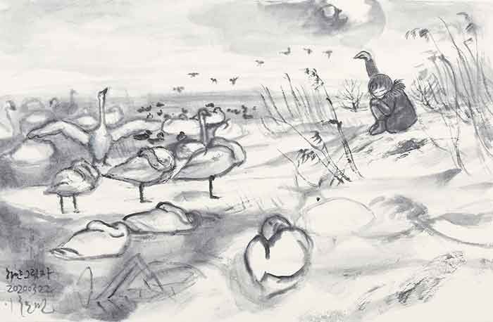 전시 <숨>에 관하여 “어쩌면 그림은 붓이 아니라, 숨으로 그린다고 하는 게 맞을지도 모르겠다. 그동안 종이보다는 허공에 그려댄 그림들이 훨씬 많을 거다. 그것은 말하자면, 숨으로 그리는 것이라서 쉽게 그려지지만 또한 동시에 사라진다. 그래서 한 번도 완성된 적이 없다. 하지만 늘 숨을 자각하고 그 리듬과 형태를 따라 그리고 싶다고 생각한다. 내게는, 그리기를 지속하는 것이 무엇보다 중요하기 때문이다.” (작가노트 중에서) 내게 그리기는 무언가를 진심으로 알아가는 과정이다. 그림의 표면이 굳고 마르기 전까지 그 표면에서 이루어지는 모든 움직임과 흔적들이 그림의 시간과 궤적을 이룬다. 그림이 비록 종이와 같거나 그보다 조금 도드라진 두께를 가질 뿐이지만, 때로 아주 두껍고 묵직하게 느껴지기도 때로 길고 아득한 시간으로 기억되기도 한다. 그래서 하나의 그림을 그리고 나면 그것을 비로소 조금은 알게 된 것 같은 안도감이 든다. 아직 진행 중인 그림의 표면에서 반복적으로 긋고 지우고 그리고 문지르고 하다 보면, 무언가를 찾고 기억하려는 것도 같고 동시에 지우고 잊으려는 것도 같다. 이 과정에서 세계에 대한 나의 무지를 깨닫는다. 안다고 생각하는 것과 실제로 아는 것이 다른 것처럼, 눈으로 보거나 마음속에 간직한 이미지와 그것을 실제로 그려내는 것 사이에는 큰 격차가 있다. 그래서 그리기는, 마치 기존의 기억을 꺼내고 지우면서 더듬더듬 새로 낱말을 익히는 일처럼 느껴지곤 한다. 이렇게 보면, 그리기는 끝도 없이 이어져야 할 것만 같다. 당황스럽지만, 한편 다행스럽다. 그림들은 무심하면서도 한편 집요하게 이어진다. 종종 슬럼프에 빠지지만 붓질에서 생기는 힘과 속도에 매달려 간신히 탈출한다. 그 붓질이 점점 가속하면 당분간은 그리기가 가능해진다. 전시 <숨>은 삶의 다양한 장면과 대상들, 그리기를 지속하고자 하는 한 화가의 의지와 욕망, 순간순간의 감정과 태도 등을 가볍고도 솔직하게 그려낸 그림들을 보여준다. 생활과 예술의 경계에서 그림이 어떻게 이루어지고 또 그리기는 어떻게 이어지는지, 그 와중에 화가의 눈과 마음에 세계는 어떤 모습과 질감으로 맺히는지 느껴보는 시간이 되기를 기대한다. 2021.10 이현민 (출처= 금호미술관)