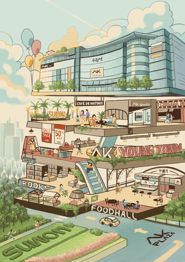 [AK플라자와 함께 하는 일상] 일러스트 공모전은 AK플라자의 새로운 슬로건 ‘일상의 새로운 경험의 데일리 프리미엄’을 실현하기 위하여 개최하였습니다. 이번 공모는 다양한 크리에이터들이 작품을 공유할 수 있는 컨텐츠 커뮤니티, ‘네이버 그라폴리오’의 콜라보레이션을 통해 분당, 수원, 평택, 원주 AK플라자에서 즐거운 하루를 보내는 나의 일상을 참신하게 표현한 총 68명의 작가를 최우수상, 우수상, 장려상, 입선으로 각각 선정하였습니다. 특히, 올해는 고객들의 직접 참여로 이루어진 이벤트로서 고객 친화적인 AK플라자의 모습을 담고 있으며, 크리에이터인 창작자들의 작품활동을 지원하는 동시에 동기부여의 기회를 제공합니다.