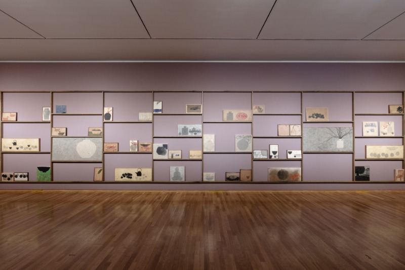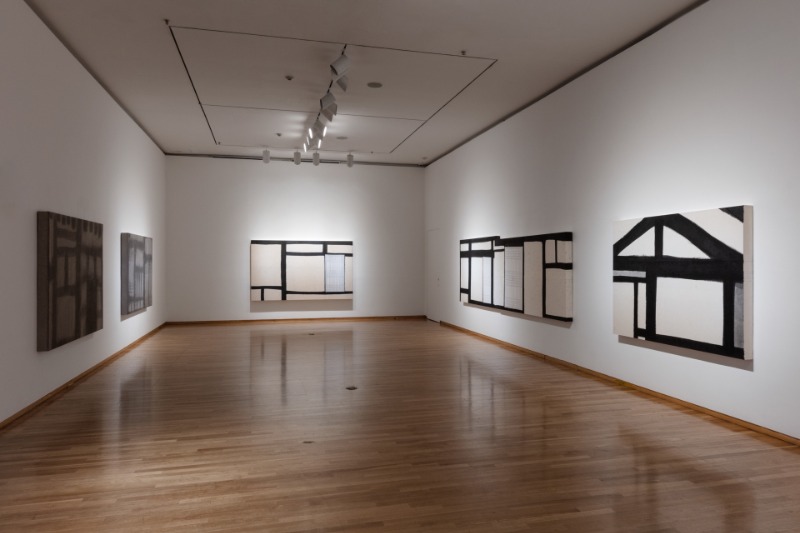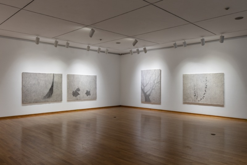 전시 내용 금호미술관은 2021년 11월 19일부터 2022년 2월 6일까지 강미선 초대전 《水墨, 쓰고 그리다》를 개최한다. 강미선은 오랜 시간 동안 한지의 물성과 먹의 본질에 대해 탐구해 온 작가이다. 그는 여러 겹의 한지를 쌓아 올리고, 표면을 두드려 한지 고유의 질감이 잘 드러나는 바탕을 만들고, 그 위에 일상의 풍경과 사물을 담담한 먹빛으로 그려내며 모두가 공감할 수 있는 따뜻한 정서를 전한다. 이번 전시에서 강미선 작가의 작업은 더욱 확장된 세계로 나아간다. 소소한 풍경과 정감 있는 정물을 담묵으로 부드럽게 표현한 <관심(觀心)>연작과 강한 묵의 필선을 통해 새로운 조형미를 보여주는 <한옥(韓屋)>연작, 명상을 주제로 자연의 재료인 감을 이용한 <무언가(無言歌)> 등의 신작을 선보인다. 또한 전통 서가도 형식을 차용하여 현대적으로 구현한 <서가도(書架圖)>, 금강경 5,149자를 자신만의 방식으로 한 자 한 자 써 내려 간 대작 <금강경(金剛經)-지혜의 숲> 등 색다른 형태의 수묵 설치 작업을 통해 관람객들을 아늑한 사유의 공간으로 초대한다. 작가는 종이와 먹이라는 단순한 질료의 개념을 넘어 수묵화를 통해 현대를 살아가는 사람들의 일상과 정신을 함께 담아낸다. 나아가 글과 그림의 경계를 자유롭게 넘나들며 오늘날 수묵화의 지평을 넓히는 동시에 새로운 가능성을 제시하고자 한다. 전시 평론 수묵의 정서와 한지의 조형 -강미선으 ㅣ근작에 대해- 오광수(미술평론가) 강미선의 작업은 지지체에 가해지는 일반적인 그리기의 과정으로 전개되지 않는다. 수제 한지이면서 작가는 이를 자신의 공정(工程)으로 또 하나의 작업을 진척시킨다. 공장(工匠)이 기술적으로 만든 한지를 다시 태어나게 하는 작업으로서 평면을 표면으로 바꾸는 작업이다. 평면을 표면으로 다시 태어나게 한다는 것은 단순한 기능적인 쓰임새로서의 평면이 아닌 독특한 표면의 창조를 전제한다는 것이다. 어쩌면 그리기에 앞서 이루어지는 이 과정은 회화 일반의 차원에 못지않은 중요성이 확인되는 일이자 조형적 실현이란 과정에 상응되는 것이다. 여러겹을 발라올린 한지의 표면은 일반적인 종이로서의 수영성의 기능에 머물지 않고 그 자체가 살아 숨 쉬는 공간으로 태어난다. 미세한 융기로 덮이는 표면은 일종의 전단계라고 할 수 있는데 이 위에 이루어질 어떤 행위를 수용할 준비를 갖추고 있기 때문이다. 일반적인 표상의 체계가 아닌 수묵과 한지의 만남이란 구조화는 단순한 바탕과 이 위에 가해지는 일정한 행위의 관계라기보다 하나의 실존으로 구현된다는 점에서 그 독자의 조형 전개가 이루어진다고 말할 수 있다. 어떤 의미로 본다면 이는 일반적 회화로서 완결되는 것이 아니라 진행으로 이루어지는 것과 다름없다. 완결되지 않고 진행된다는 점에서 그것은 생명체이다. 단순히 기능적으로 만듦이 이루어지는 것이 아니라 태어나는 것으로서 말이다. 화면에 나타나는 풍경이나 정물이 일반적인 보는 행위로서 설명을 넘어 서서히 다가오는 어떤 기대감으로 설레게 하는 이유가 여기에 있다. 그가 내세운 《水墨, 쓰고 그리다》란 표제는 단순한 서화동원(書畵同源)의 형식의 환원을 기도한 것이 아니다. 바탕과 이 위에 가해지는 수묵은 행위와 물성의 만남이란 극적인 과정을 거처 그 고유의 존재로서 다시 태어나기 때문이다. 그것은 설명을 앞질러 오는 존재감이다. 완결되지 않은 하나의 경향성이라 말할 수 있다. 화면은 더없이 내밀하다. 담묵에 의해 시술되는 표면은 부드럽고 아늑한 공간에 들어온 느낌을 준다. 안으로 가라앉으면서 한편으론 은밀히 밖으로 솟아오르는 경향으로 인해 더욱 구조적인 차원을 만든다. 담묵과 더불어 감물이나 옻물로 이루어지는 표면은 일종의 포화상태를 만들면서 표면에 풍부한 표정을 일구어낸다. 이 같은 복합적인 화면조성은 깊이로서의 구조에 상응되는 것이라 할 수 있다. 모든 것이 잠식된다는 것은 화면의 구조적인 일체화를 높이는 것이기도 하지만 모든 속된 것을 가라앉히는 정신의 순화와도 대응된다. 《水墨, 쓰고 그리다》 평론 글 중 발췌 (출처=금호미술관)