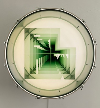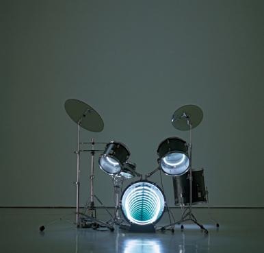 2016 LES lights. drum. one-way mirror. mirror and electric energy 91.4x91.4x55.9cm