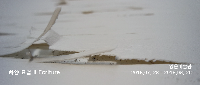 영은미술관은 2018년 7월 28일부터 8월 26일까지 영은창작스튜디오 10기 입주작가(단기) 김명남의 개인전 《하얀 묘법 II Ecriture blanche II》을 개최한다. 서울과 파리를 오가며 활동 중인 김명남은 1984년부터 수차례 개인전(약 80여회)과 그룹전(약 200여회)을 펼치며 활발한 작업을 지속하고 있다. 김명남은 순백의 화면을 뚫거나 긁어내는 방식을 통해 세상과의 소통을 모색한다. 자국의 흔적들은 마치 언제 생겼는지 인지하기 어려운 인간의 피부, 주름처럼 시간과 기억의 지층들로 보인다. 켜켜이 쌓아나간 작가의 기록은 《하얀 묘법 II Ecriture blanche II》의 전시장에 한데 모여 순백의 공간을 경험하는 것으로 시작되어, 점차적으로 드러나는 점과 선의 흔적들을 따라가면 알려지지 않은 미지의 풍경과의 마주침으로 확장된다. 이러한 만남에 대해 프랑스의 미술비평가 필립 피게(Philippe Piguet)는 “형언할 수 없는 어떤 외딴 곳으로 향하는 비범한 명상”으로의 초대라고 표현했다. “비범한 명상”의 기능을 담당하는 미니멀한 순백의 화면은 작가의 내적 고민과 사유의 결과로써 탄생한 것이다. 녹내장이라는 진단 앞에 작가는 붓과 색을 모두 내려놓고 흰색의 의미와 삶(예술)의 근본을 지독하게 탐구했고, 그 결과로 색을 제거하고 작가 주변의 가장 가까이 있던 도구들을 이용해 화지에 바느질 선, 송곳의 구멍을 내어 드로잉 하듯 작업을 풀어왔다. 이번 영은미술관 4전시실의 디스플레이에서 작가는 특히 조명의 빛을 이용하여 작품과 공간 간의 밝음과 어둠 대비를 극대화시키는 시각적 효과를 창출한다. 무한의 공간 속에 침투하는 빛과 그로 인해 선명히 드러나는 종이 표면의 도드라짐, 점과 선의 의도/비의도된 운율은 관람객으로 하여금 외부의 잡음을 소거하고 전시공간에 몰입하게끔 만들어 명상적 경험의 공간을 열어 놓는다. 김명남의 작품 속에 때때로 접합된 작은 인간상은 호기심의 대상으로 작용하여 관람자에게 광활한 우주 혹은 깊은 심연 속에 자리한 인간 존재를 상기시킨다. 최종적으로 이번 전시에서 작가는 감상자와 작품이 만남으로써 생성될 또 다른 이야기를 제한 없이 개방한다. “… 녹내장으로 인해, 깊은 생각을 해 봤다. 어떻게 작업을 해나가야 하나? 그 회답은 … 바로 내 안에 있었다. 그때 나는 붓과, 내가 좋아하는 색깔들을 내려놓고, … 이제까지의 삶을 되돌아보았다. 평생을 종이로 작업을 해왔고, 나의 삶속에서 바늘과 실은 늘 내 가까이 있는 물건들이었다. (중략) 흰색은 삶의 모든 것을 덜어내기도 하고, 흡수 할 수 있는 색이다. 모든 걸 내려놓고, 그냥 묵상으로 초대하는 색깔이다. 또한 삶에서 가장 가파른 절벽에 처할 때와 가장 희열을 느낄 때, 빛처럼 강하게 와 닿는 색이었다. … 나는 송곳으로 하얀 화면에 흔적을 남기며 여행을 떠난다. 그리고 그 여행에서 만난 사람들과 소통을 한다. 이쪽에서 저쪽으로 바라볼 수 있는, 빛을 투영하고, 공기가 양쪽으로 흐르는 그래서, 모두가 좋아지는, 좀더 평화로운 삶과, 휴식이 되는 그런 작업을 위해 늘, 하얀 화면 위를 여행하고 있다.” - 작가노트 중 일부 발췌 김명남 작가의 작품은 언뜻 보면 단순한 백지처럼 아무것도 없는 듯 하지만, 그 순백 속에는 무언의 기록인 점과 선이 고요한 정신적 풍경을 빚어낸다. 이번 전시를 통해 지금의 시대에 깃든 시각적 포화 상태에서 잠시 이탈하여 외딴 풍경과의 조우를 경험해보길 바란다.