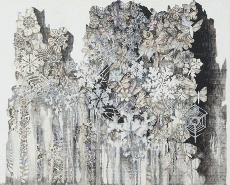 2016 한지 꼴라쥬 위에 먹과 채색. 금분. 은분 130x160cm
