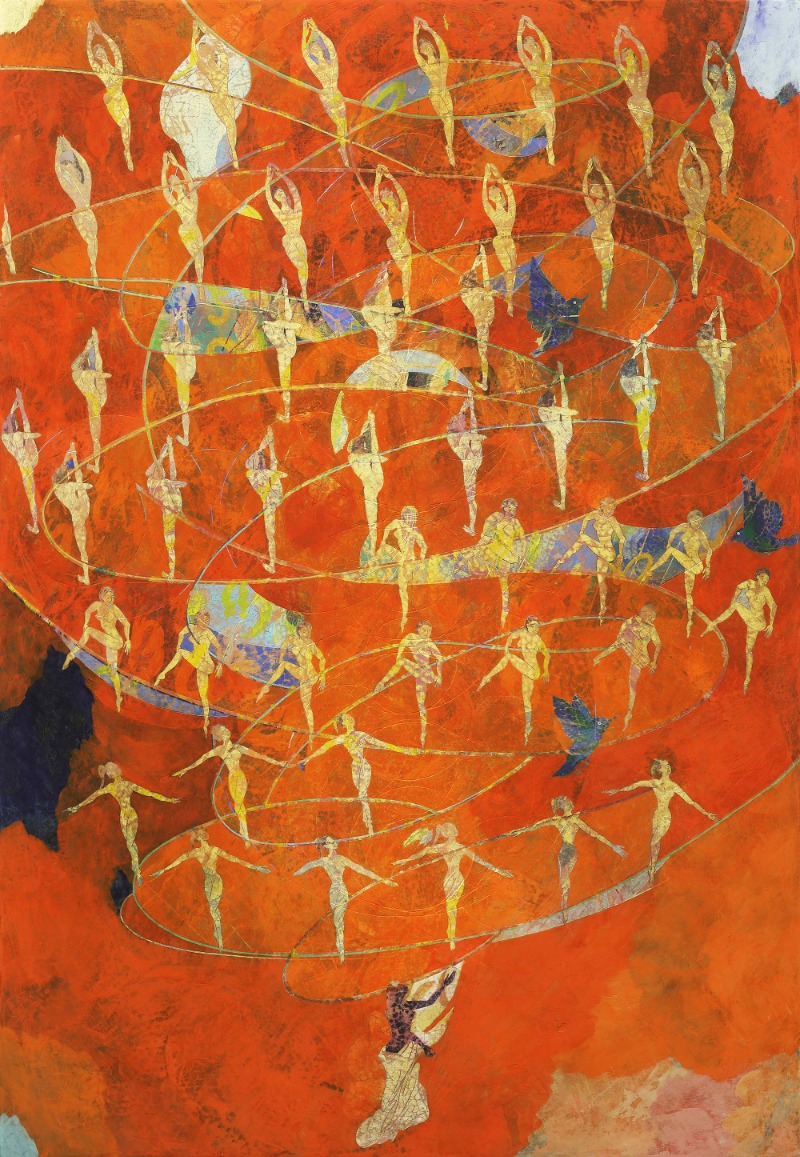 갤러리조선은 2022년 2월8일부터 3월1일까지 우민정(WOO MinJung)의 두 번째 개인전 《벌》을 개최한다. 마판에 흙을 채워 수많은 서사들을 새기는 우민정 작가는 이번 전시를 통해 ‘시도하는 우리들’에 대해 이야기한다. 반복되고 끊임없이 지속되는 사람들의 행위를 통해 어쩌면 무의미할 수 있지만 내일을 만들기 위한 시도들의 중요성에 대해 이야기한다. 우민정의 작품에 등장하는 도상들인 코끼리, 뱀, 풀, 무지개, 밧줄과 천막 등은 각 인물들이 바라는 바를 의미하며, 그것은 항상 수직적으로 작용하여 언젠가 그 시도를 뛰어넘고자 하는 우리들의 염원이 담겨있다. 제목의 ‘벌’은 움직이고, 소리가 나며, 끊임없이 무언가를 찾아다니는 것들을 대표한다. 언젠가는 무의미한 행동으로 이어질 수 있지만 그와 동시에 본능과 직결된다는 아이러니를 은유적으로 나타내는 소재이기도 하다. 계속되는 시도는 현대인들의 특별하고도 비슷한 삶에 대한 성찰을 제안한다. 이번 전시는 이전과 달리 각 그림에 불설, 문학, 가곡의 구절 등의 서사를 가지고 있다. 하지만 이들은 완벽한 기승전결이 있는 시나리오라기보다는 누구나 한 번쯤 있었을 법한, 어렴풋이 모두 가지는 그런 시시해 보일 수 있는 서사들이다. 있었다가 어느 순간 이유없이 없어지기도 하고, 갑자기 솟아난 듯 영웅처럼 생기기도 하고, 부끄럽거나 비열하기도 한, 일상적인 것들이다. 인물들은 목적지를 향해 달리기도 하고, 추락하기도 한다. 거울을 보고 자신에게 빠지기도 하고, 신이 된 듯 사랑하기도 하고, 함정에 빠져 헤어지기도 하고, 자유롭게 수영하기도, 매달려 구걸하기도 하고, 함정에 빠지기도 한다. 일상적이지만 자신에게만큼은 특별한 순간들을 통해, ‘무한한 시도’로 읽히는 꿀벌들의 삶을 위로 받기를 바란다. 2. 작가노트 나의 매일은 항상 실패를 내포한 ‘시도’로 채워진다. 이러한 시도는 반복적인 움직임이다. ‘시도’들은 도처에 전단지처럼 덕지덕지 붙어있는 것처럼 보인다. 세상은 수많은 시도들을 통해 만들어진다. 무한한 선택과 기회와 자유를 표방하는 현재시점에서 절대적으로 연속적인 무엇인가를 찾기는 힘들어 보인다. 우주의 먼지인 나, 의미를 찾기 힘든 개인의 존재를 과연 무엇이 빛나게 하고 의미를 부여할 수 있게 만들까? 오로지 시도만이, 시도하는 그 순간의 움직임만이 빛이 깜빡이며 점멸하듯, 점이나 먼지를 태워 선형으로 떨어지는 별똥으로 만든다. 이러한 시도들이 내일을 만들고 의미를 부여할 힘을 줄 것이다. 무수한 실패를 거친 운동선수들의 최고의 한 순간처럼, 반복적인 시도들의 모습과 움직임을 포착하고자 한다. (출처 = 갤러리 조선)