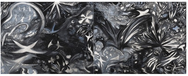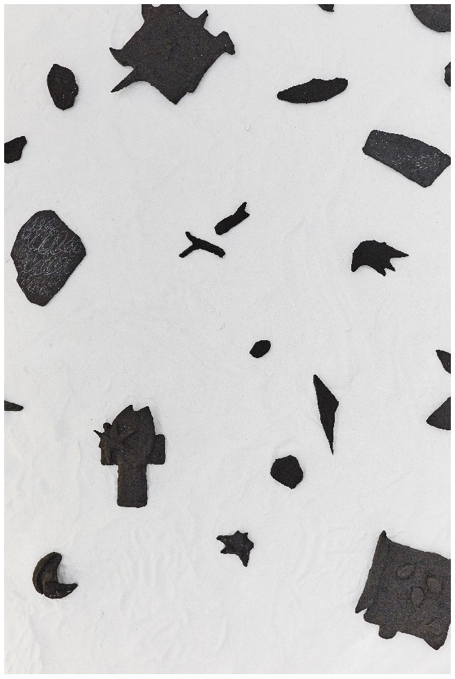 전시서문 : 파종의 미학 갤러리 도스 큐레이터 김혜린 프랑스에서는 늦은 낮과 이른 저녁 사이의 어느 지점 즉 해가 질 무렵에 대상의 윤곽이 제대로 분간되지 않는 검붉고도 푸른 때를 개와 늑대의 시간이라고 표현한다. 땅거미가 내려앉으면 멀리서 보이는 대상이 살가운 기색으로 다가오는 개인지 아니면 이를 드러내고 위협할 수도 있는 늑대인지 알 수 없기에 묘한 긴장감을 일으키는 시간이 된다는 의미에서이다. 자칫 한기를 몰고 오는 듯이 느껴질 수도 있는 이 오묘한 떨림의 시간에 대해 영원한 이 시대의 소설가 박완서는 조금 다르게 해석을 했다. 낯설고 적대적이던 사물들이 거짓말처럼 부드럽고 친숙해지는 시간이고 그렇게 반대로 생각해도 그 시간이 좋다고 말이다. 이처럼 예술가의 눈은 기존의 것들을 다르게 이해할 수 있어야 하고 또 그래야만 스스로가 창조의 원천을 체득하여 자신으로부터 동기화할 수 있다. 다르게 이해한다는 것은 틀린 것이 아니다. 새로운 방향과 방법으로 본다는 것이다. 보이는 것이 다는 아닐 수 있어도 보는 것이 앎을 대변할 수는 있으므로 예술가의 시각은 노출되어 있는 만큼의 세상에 대한 지적 활동이다. 그러나 예술가의 시각은 도전과 인내를 멈추지 않는다. 그 수고로움을 마다하지 않으면서 본다는 것의 의미를 확장한다. 의미의 확장을 위해 수고로움을 자처하는 것이기도 하다. 이 필요충분조건에 의해 새로운 시각은 새로움 그 자체로 개진되며 곧이어 사실을 비롯한 대상과 현상, 그리고 진실에 대해서까지도 어떠한 가능성을 추출할 수 있는 역량으로 자리 잡는다. 목지윤의 지적활동은 숲의 반경을 흡수하는 것에서부터 시작된다. 우선으로 목지윤은 “밤도 아침도 아닌 경계가 불분명해지는 그 찰나의 시간대에 보이는 검정 색감의 숲”이라고 언급한다. 대상과 동떨어져 있지 않은 반경 내에서 경계라는 어떠한 사실 혹은 현상에 대해 시선을 떼지 않는 것이다. 의미를 발견하고 세계를 넓히기 위한 도전으로써 관찰하고 주목하며 마주한다. 이렇듯 용기 내어 다가가는 행보에는 잇따라 목지윤이 언급하는 바와 같이 “두려움이 아닌 새로운 시작”을 촉매하는 시도가 깃들어 있음을 알 수 있다. 시도를 통해 획득된 새로운 시작은 항상 설렘을 동반한다. 이는 새로움의 내핵에 설렘이 잠재해 있다는 뜻이기도 하다. 새로움의 직전에 두려움을 발견하게 됨을 알고 그것이 오히려 시작의 반증임을 깨닫는 인간이라면 설렘은 배가된다. 그리고 작가는 이러한 설렘을 통해 새로움과 시작을 독해할 수 있는 눈 즉 자유와 가능성의 표지를 체득한다. 작가는 불분명하고 모호해서 명명 이전의, 아직은 어떠한 것이라고 표현될 수밖에 없는 것들의 씨앗을 발견한다. 그리고 그들을 파종한다. 제각기 다른 모양의 씨앗들은 전시의 저변에 넓고도 깊게 퍼져 있으며 검정 숲의 색감이 입혀져 있다. 검은 붕대로 감겨 있으나 이는 규정될 수 없음에 대한 불안이나 초조함을 은유하기 위한 어둠이 아니다. 모든 색이 더해져 만들어진 검은색에는 모든 색의 가능성이 담겨 있듯이 가능성의 끝없는 생성과 앞으로의 무한한 생장 이에 따른 기대와 설렘을 은유하는 새로운 시작의 빛깔이다. 즉 뿌려지고 돋아나며 성장함에 대한 희망이 촘촘하고 부드럽게 직조된 섬유처럼 씨앗을 보듬고 활기차고 친숙하게 형형하는 빛깔로 우리에게 다가오는 것이다. 한편 작가는 책을 기반으로 한 작업도 선보인다. 책의 재료가 되는 종이는 숲에서 태어나 자라고 번성한 나무의 변화 가능성을 내포한다. 종이 위에는 음절과 단어, 문장이 조합되어 이야기와 삶을 이룬다. 삶을 이루는 구성요소 하나하나가 지혜롭고도 자유롭게 영향을 주고받고 얽히다가 종내에는 삶에 대한 어떠한 메시지 혹은 다양한 해석의 여지를 보여줌으로써 예술작품의 수용자를 위로하고 보호한다. 이 놀라운 가능성에 작가는 생명력을 더하여 숲의 세계를 확장한다. 순지를 여려 겹으로 덮어서 단어나 문장을 흩트리고 모호하게 만들면서도 오히려 순지가 쌓여 만들어진 층을 드러내고, 완숙된 식물의 일부가 아닌 하나의 독립적인 개체로서 새로운 시작을 도모할 수 있는 가망 즉 씨앗들을 파종함으로써 생성과 소멸이 공존하는 소우주적인 숲으로 우리를 안내하고자 하는 것이다. 그리고 이러한 작업들에는 일정한 규칙이 약속되지 않는다. 엄정하고 획일적인 기준에서 벗어나 자유와 자율 그리고 가능성의 발아가 담보하는 생명력이 작가의 작업과 작품에 깊이 스며들어 있음이다. 목지윤의 작품은 고로 우리에게 파종의 미학에 대해 말하고 있다. 불분명하고 모호한 것들은 작가의 시각을 통해서 무엇이든 될 수 있는 희망을 탐구하게 만든다. 유망한 것들은 우리로 하여금 기대와 설렘으로 우리를 다시 한 번 살아 숨 쉬게 한다. 어둠은 더 이상 어둠이 아닌 생명력을 띤 숲의 빛으로 파종된 씨앗을 비추고 검푸르고도 붉은 윤곽의 시간이 저 멀리서 물결칠 때 우리는 기다림을 배운다. 기다림은 기쁨으로 거듭나면서 마침내 파종된 씨앗들이 움트는 시간은 당신에게 심장 박동으로 영글게 될 것이다. 이 어떠