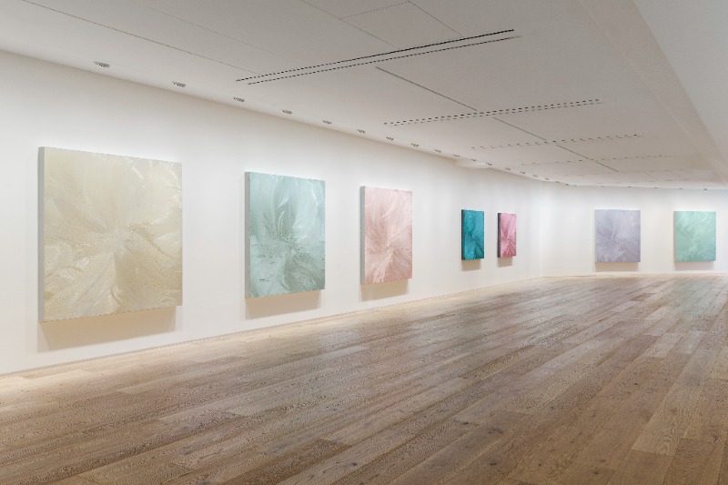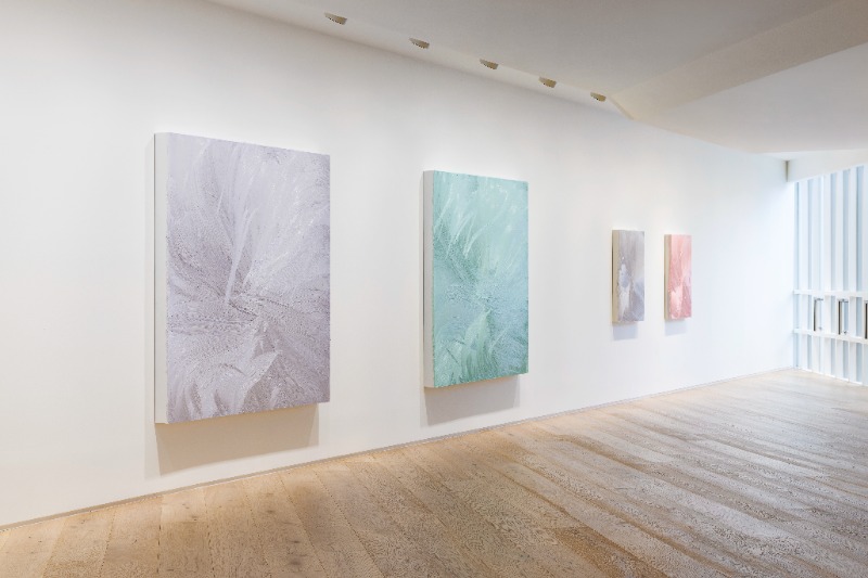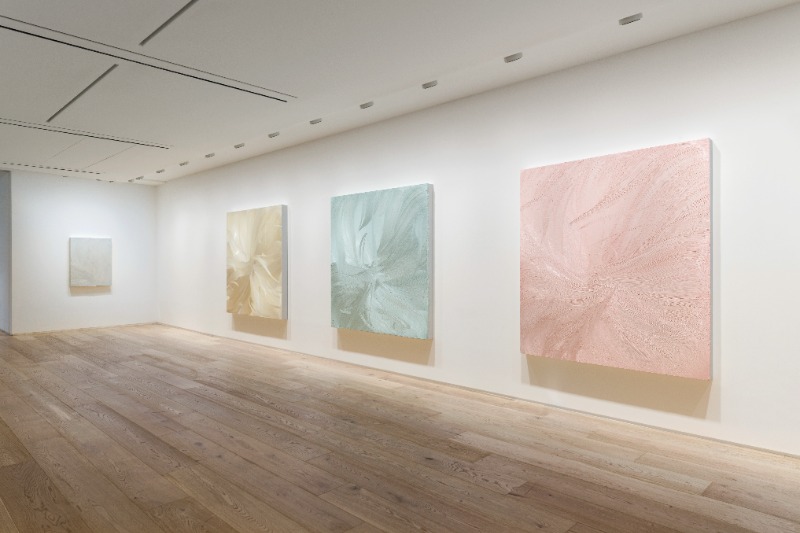 우리는 공간을 풍경의 연장선으로 보는가, 아니면 투시도적 공간과는 별개인 행동의 장으로 이해하는가? 나는 둘 중 그 어느 것도 부정할 수 없다고 생각한다. 단일적인 특성이라기보다 두 가지 측면 모두 동시에 고려될 수 있다고 여긴다. — 제이슨 마틴, 2022 타데우스 로팍 서울은 오는 2월 24일부터 4월 16일까지 영국 현대미술가 제이슨 마틴(Jason Martin, b. 1970)의 국내 첫 개인전 《수렴(Convergence)》을 개최한다. 마틴은 1997년 영국의 ‘영 브리티시 아티스트(YBAs, Young British Artists)’를 탄생시킨 전설적인 전시 《센세이션(Sensation: Young British Artists from Saatchi Collection) 》에 참여하며 작가로서의 입지를 다지기 시작했다. 그간 작가는 회화의 정의에 대해 질문하며 강렬한 색채와 더불어 2차원과 3차원의 세계를 잇는 조각적 특징이 두드러지는 회화 작품을 선보여왔다. 제이슨 마틴은 회화의 가능성을 역설하며 다양한 예술적 실험과 도전을 통해 작가만의 고유한 표현 기법을 구축했다. 이번 전시에서 선보이는 신작 알루미늄 회화는 그의 지속적인 연구의 일환으로 내면으로 향하는 반복적인 붓놀림을 기반으로 하며, 유려하게 펼쳐지는 붓놀림은 작품 내 하나의 접점으로 수렴된다. 작가는 이러한 수행을 ‘공간과 시간의 합일’이나 ‘경계의 조우’로 설명하고, 한국에서 오랜 전통을 가진 ‘보자기’와도 그 유사점을 찾는다. 끊임없이 새로운 재료와 기법을 모색해 온 마틴은 신작 회화 제작을 위해 10년 만에 다시금 붓을 들었다. 전작에서는 직접 제작한 빗 모양의 도구로 짙은 줄무늬를 형성하여 재료의 물성을 강조하는 데 그 중점을 두었다면, 이번에 선보이는 신작들은 회화의 가장 기본적인 도구인 붓을 사용함으로써 이전의 두꺼운 안료와 강렬한 색감으로부터 구별되는 가벼운 질감과 보다 섬세한 색의 표현이 돋보인다. 작가는 또한 천연 안료를 혼합하여 다양한 색을 조합해보는 등 꾸준한 작가적 실험을 행해왔다. 이러한 그의 부단한 연구는 <Untitled (Caribbean blue / Viridian)>과 <Untitled (Titanium white / Fluorescent orange)>에서 여실히 드러난다. 흰색의 색조를 근간으로 하는 마틴의 신작 회화는 마치 깃털처럼 가볍고도 부드러운 그의 붓놀림을 만나 선명하면서도 미묘한 색으로 거듭난다. 일련의 회화들은 은은한 광채를 품고 있는데, 이는 작품의 밑바탕이 되는 알루미늄이 빛을 포착하고 반사하는 데서 기인한 것이다. 작가의 재료에 대한 고찰의 정수를 다시 한번 확인할 수 있는 지점이다. 각 작품은 마틴의 절제적이면서도 반복적인 붓놀림을 축으로 형성되며, 이들은 작품 중심부에 위치한 하나의 점에서 만나 완성된다. 작가는 하나의 접점으로 수렴되는 명상적 행위에 대해 ‘제안된 하나의 특이점으로 외부의 움직임’을 가져오는 것이라고 설명한다. 평면 구상화에서 공간감과 거리감의 표현을 가능케 했던 선형 원근법의 도입은 당시 르네상스 시대 작품 내의 모든 선이 소실점으로 수렴되도록 하는 회화적 구성을 야기하였다. 마틴은, 역설적이게도, 자신의 단색 추상화는 구상의 전통으로부터 출발한다고 소개한다. 이에 대해 작가는 다음과 같이 덧붙인다. ‘각 작품 안에는 항상 형용할 수 없는 미묘한 긴장감이 존재하며, 나는 늘 이것을 찾고자 한다. 공간이 상상으로 형성된 것도, 묘사의 대상도 아닌 것처럼’. 사각형 알루미늄 배경과 작품 내부로 향하는 마틴의 섬세한 붓놀림은 아시아 문화에서 주로 발견되는 보자기 특유의 포장 방식을 연상시킨다. 한국에서는 ‘복을 싸서 선물한다’는 의미를 담고 있기도 한 보자기는 정방형의 천으로, 물건을 싸거나 덮기 위한 용도부터 특별한 선물이나 의식을 위해 사용되기까지 다양한 형태로 활용된 전통이 있다. 보자기에 대한 작가의 관심은 일본 레지던시 활동 시절로 거슬러 올라가는데, 이에 대해 그는 ‘대략 25년 전, 일본의 차(茶) 거장이 내게 기모노 보관을 부탁했다. 런던에서의 어느 날 일본 가마쿠라에서 온 야마다 소헨(Yamada Sohen)이 내게 보자기에 포장된 정장 기모노를 맡겼는데, 아직까지 찾아가지 않았다. 곱게 지어진 매듭을 내 능력으로는 다시 구현할 수 없다는 것을 알기에 한 번도 열어보지 않았다. 이러한 행동에는 역사적 의복을 담은 정교하고도 신성한 이 보호막을 망칠 위험을 감수하고 싶지 않았던 내 마음이 기저에 깔려있다.’고 회상한다. 작품의 가장자리 표현, 색의 조합, 붓이 만들어낸 선들이 복합적으로 얽혀 관계를 맺는 마틴의 작품은 회화를 제작하는 그 행위 자체에 대한 반추이다. 작품에 표면적으로 드러나는 요소들은 이들을 규정짓는 운동감을 내포한다. 선회하는 붓놀림으로 극대화된 물결 모양의 곡선은 흐르는 듯한 연속적 움직임을 선사하며 보는 이의 시선을 모든 선이 맞닿아 있는 바로 그 접점으로 향하도록 안내한다. 마틴의 작품을 마주한 관객은 작품 저 너머의 상상의 공간을 경험하게 되고, 더 나아가 그곳에 우리 내면에 존재하는 정신적 지형을 투영함으로써 깊은 사색에 잠기게 된다. (출처=타데우스 로팍)