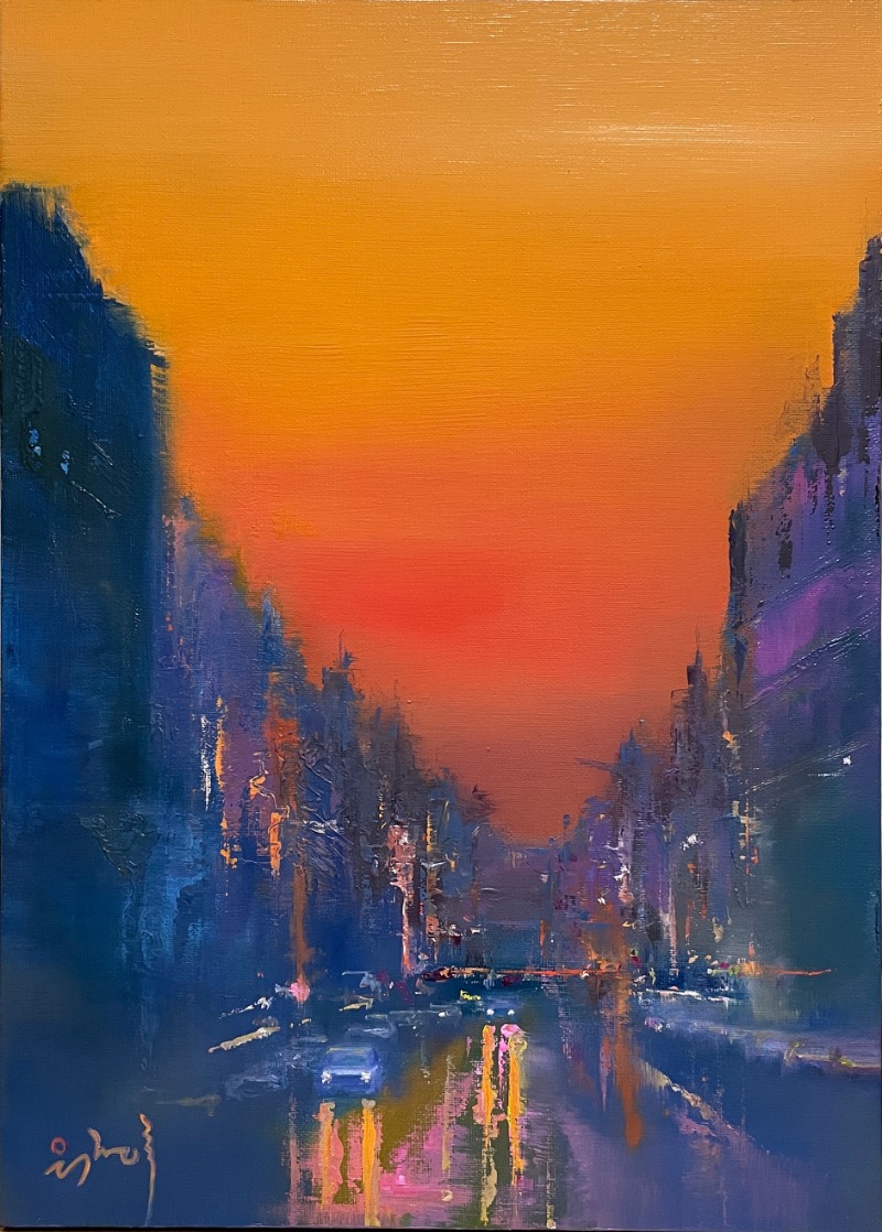멍하니 바라보다 땅만 보고 주로 걷던 내가 어느 날 고개를 들고 하늘을 바라보면서 멍하니 서있었던 적이 있었다. 문득 왜 나는 고개를 푹 숙인 채 걸어가고 있었을까 싶은 생각이 들었다. 일상의 반복과 근심으로 가득한 나에게 갑자기 불현듯 감정의 변화가 오던 그날, 나는 머리 위 펼쳐진 파란 하늘을 멍하니 바라보고 있었다. 창공에 펼쳐진 비행운을 상상하며, 자유로워진 나를 발견하였다. 그날부터 나의 일상에서 빠지지 않는 일이 생겼다. 시시때때로 변하는 하늘의 구름들을 보며, 비행운을 그려본다. 비행운의 흔적들로 가슴과 머릿속을 가득 채운다. 가끔은 멍하니 하늘을 바라보자. 그리고 내면의 평화를 찾자. (출처 = 갤러리아미디)