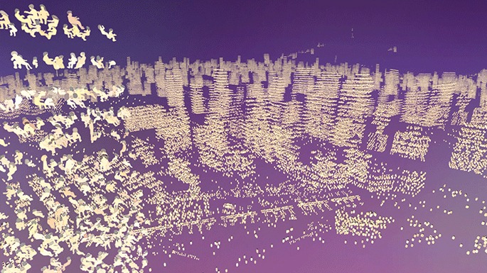 도시는 사람들로 가득 차 있다. 높다란 건물과 아스팔트, 매연과 소음, 벽들 너머로 도시의 사람들이 출근하고 일하고 일상을 보내는 모습이 보인다. 작가는 애니메이션의 상상력으로 도시를 움직이는 사람들의 삶과 일상을 들여다본다. 도시를 이루는 틀과 껍데기 너머 체온과 숨소리로 가득한 사람들의 풍경으로 표현된 도시의 모습은 매일같이 살아가는 도시의 생태에서 개인이 위치한 삶의 풍광을 돌아보게 한다.