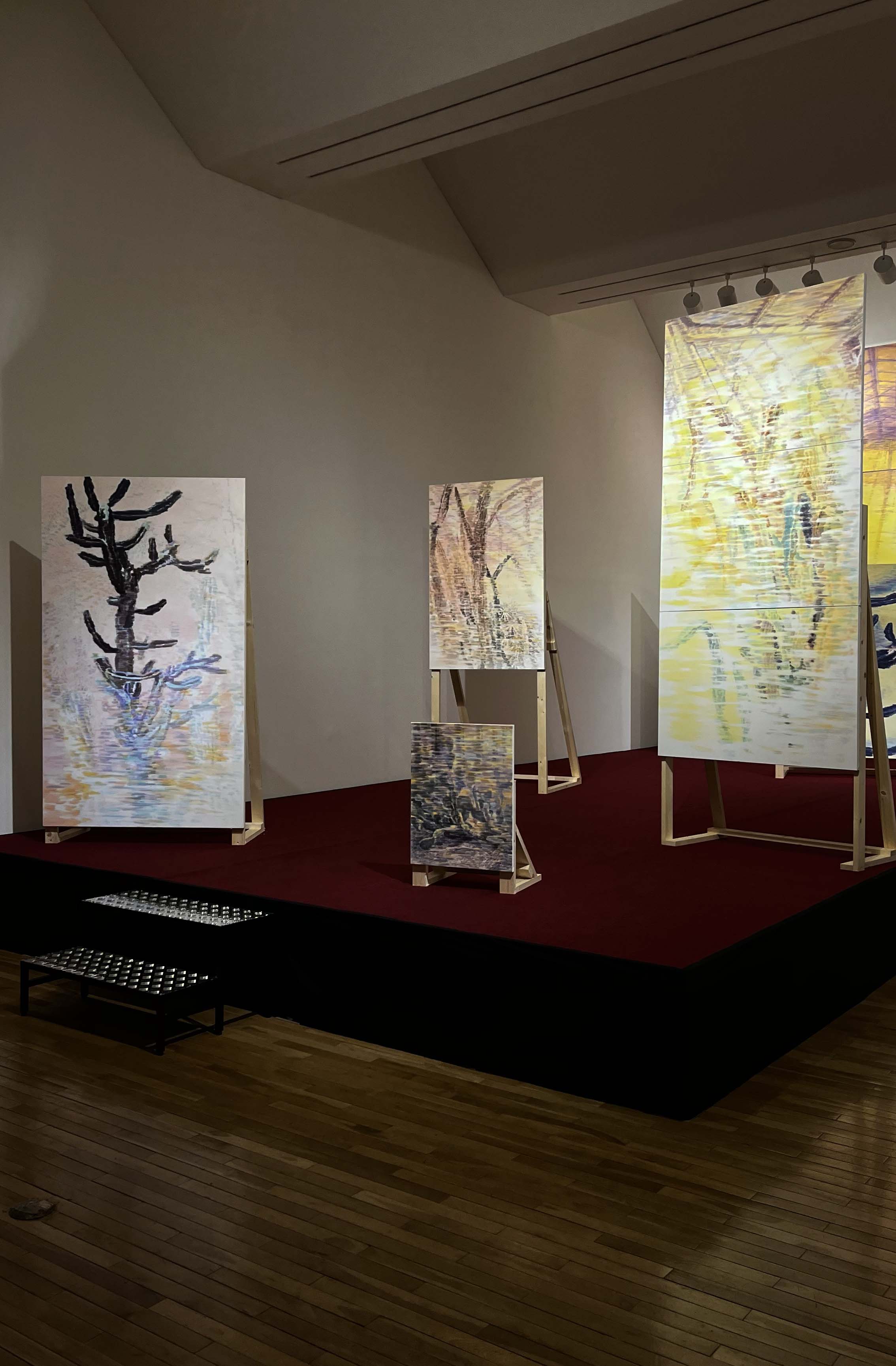작가는 이러한 작업을 통해 그림과 공간의 유기적 관계 속에서 그림들이 하나의 지표가 되어 보는 이에게 이미지 너머 아무것도 존재하지 않는 공간을 어떻게 바라볼 것인지 묻는다.‘존재'를 전제로 하는 ‘존재하지 않음'에 대한 인지가 단면을 유추할 수 있는 출발점이라는 이야기를 전하는 동시에 관람객들을 무한한 영역의 열린 공간으로 이끈다.