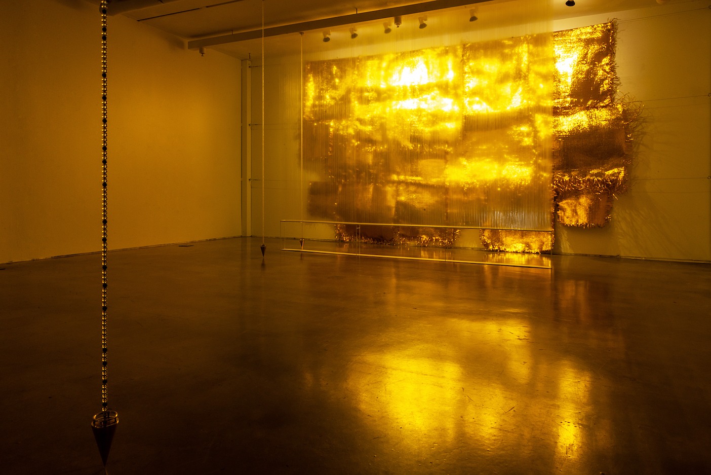 작가의 세계관(Ground)을 형상화한 입구의 원형 설치물을 지나면, 국공립미술관을 비롯한 유수의 국내 미술관에서 대형 수공예 설치작업으로 주목 받아 온 최성임의 금박 벽과 샹들리에 형상의 설치 작업으로 전시가 시작된다. 국립현대미술관부터 대형 화랑까지, 한국의 젊은 작가라면 누구나 부러워할 만한 전시 이력을 자랑하는 윤향로의 ‘유사 회화(디지털 매체를 통한 추상회화’ 시리즈로 두 번째 섹션이 이어진다.