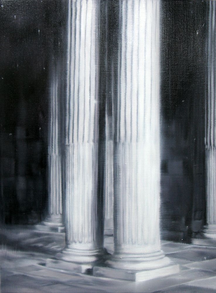 윤석원은 “작가는 ‘그리기’ 이전에 ‘보는’ 사람”이라 말한다. 이 말은 반대로 ‘보는 것’에서부터 그의 ‘그리기’가 시작되는 말처럼 들리기도 한다. 이번 전시작 <About light and matter>(2021-) 은 그의 관점이 더 선명하게 드러나는 것으로 볼 수 있다. 이전 작업에서는 경험으로 비롯된 순간이나 사건의 한 장면 등 그리는 대상의 의미를 찾거나 연결 지점을 찾고자 했다면, 2021년 여름부터 시작한 이번 시리즈는 그의 시선이 머물게 되었을 뿐, 굳이 대상에서 의미나 내용을 담는 것을 최소화하거나 배제한다. 빛이 존재하는 한 눈은 보는 것을 멈추지 않는다. 어쩌면 작가는 ‘물질’을 그리는 것이 아닌 ‘빛’이라는 대상 그 자체를 좇는 것이 아닐까. 우리의 눈은 사물 그 자체를 지각하기보다는 반사된 빛을 통해 사물을 식별하는 것이다. 청명한 하늘, 샹들리에의 반짝임과 어둠 속에서 밝히는 촛불 등 오롯이 ‘빛’과 작용해 만들어낸 어떠한 형상을 프레임에 가둔 형체가 없는 비 물질의 세계이다. 그동안 그의 작업의 기법적 특성이었던 사물의 경계를 흐릿하게 만들었던 붓 자국도 최소화하거나 생략함으로써 다양한 형태로 그려진 화면은 이전보다 간결해지고 더욱 선명해졌지만, 역설적으로 보는이 내면의 숨겨진 감정을 더욱 깊이 더듬어 보게 한다. 그가 남긴 빛의 궤적을 더듬어가다 보면 화면의 경계가 허물어지고 프레임 밖의 시공간을 상상하게 된다.