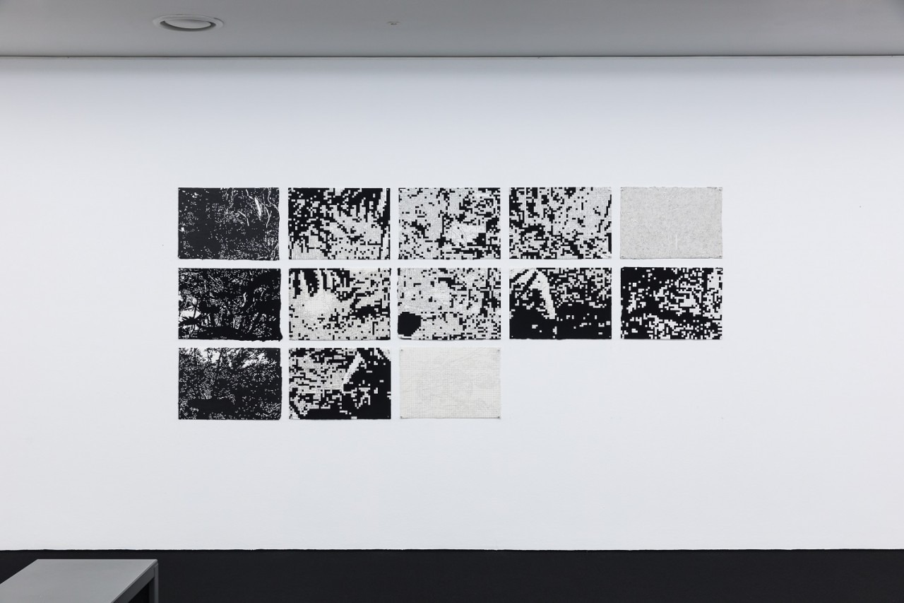 <채우고 비운 풍경> 신승오 (페리지갤러리 디렉터) 장재록은 화면에 격자 틀을 기본으로 그려 놓고 그 네모난 한 칸을 하나씩 검은 먹으로 채우거나 비워 놓는 방식으로 그려 나간다. 그가 주된 그림의 대상으로 사용하는 소재는 자연의 풍경과 게임의 배경으로 만들어지는 디지털화된 인위적 풍경이다. 이러한 소재는 바로 그림으로 옮겨지는 것이 아니라 작가가 만들어 놓은 임의의 규칙에 따라 변형의 과정을 거친다. 먼저 그가 선택한 이미지는 컴퓨터 화면상에서 흑백의 이미지로 변환된다. 이렇게 수정된 이미지는 두 단계를 거쳐 실제 화면으로 옮기게 되는데, 우선 그리드의 칸은 고려하지 않고 옅은 회색으로 이미지의 외곽선을 따라 그 대상의 형태를 중묵(中墨)을 사용하여 그려낸다. 이것은 밑그림의 역할을 하는데 예를 들어 그리드 한 칸을 차지하는 스케치의 비중이 크면 완전히 농묵(濃墨)을 사용하여 검은색으로 칠하고 여백이 좀 더 많아 보이면 비워 놓는다. 이는 마치 0과 1로 이루어지는 이진법을 기계적으로 적용하여 그리고 있는 것처럼 보인다. 일견 복잡해 보이는 이러한 변환의 과정은 그의 작업에 중요한 방법론이며, 작가가 선택한 이 방식의 이유와 의미를 발견하는 것이 이번 전시를 이해하는 척도가 된다. 《The Square》는 말 그대로 사각형을 지칭하며, 작가가 만들어내는 그리드에서 가장 작은 단위인 사각형 모양의 픽셀을 의미한다. 이러한 그리드로 이루어진 사각형은 하나의 규칙이 적용되는 틀로써 엄격하게 독립된 개별 공간으로 사용된다. 그가 이 같은 요소를 선택한 이유는 개인적으로는 가장 자신에게 명확한 경계를 가진 틀로서 안정감을 주기 때문이다. 두 번째 이유는 실제와 가상을 넘나드는 우리가 현재 사는 시공간에서 겪는 시각적 경험을 고스란히 자신의 회화적 평면에 담아내기 위함이다. 그가 말하는 시공간은 구조적으로 온라인과 오프라인 다시 말해 실재하는 것과 가상의 것을 모두 포함하고 있으며, 이는 하나의 차원에 계속해서 머물지 않는다. 그렇다면 그에게 시각적 경험은 외부의 구체적인 대상을 인식하는 것에서 시작하여 우리의 내부에서 추상적인 감각들로 전환되고 이를 기존의 경험과 연결하는 일련의 과정이다. 이런 경험은 어떤 특별한 경계를 가지고 전환되기보다는 즉각적이고 무의식적으로 일어난다. 그러나 작가는 자신이 시각적 환경에서 느끼는 경험으로 나타나는 감정이나 생각들을 단순히 재현하려 하지 않는다. 이를 위해서 그가 고안한 것이 그리드를 사용하여 자신의 직관적이고 자유로운 표현을 통제하는 것이다. 그가 만든 그리드의 기본단위인 사각형 안에서 붓질은 자신이 임의로 만든 규칙에 의해 제한적인 움직임만 가능하게 된다. 이렇게 작가는 자기 자신에게 기계적 판단을 덧씌워 자신의 무의식적인 행위를 통제하는 방식으로 디지털 이미지가 구현하는 감각을 자신의 작업에 적용하고자 한다. 따라서 최종 결과물인 사각형을 검은색으로 채우는 과정을 통해 나타나는 회화의 표면은 그것의 소재가 무엇인지 상관없이 표면상으로 유사하다. 이렇듯 작가에 의해 변형되는 자연과 디지털 환경이 보여주는 풍경은 서로를 투영하고 있는 거울과 같다. 그도 그럴 것이 우리는 자연의 이미지를 점점 디지털 이미지처럼 생생하다고 생각하고 게임의 인위적 자연 이미지는 점점 실제의 모습을 닮아가고 있다. 이렇게 이 둘 사이의 거리는 점점 좁혀져 가고 있으며, 단순히 가상이 실제를 모방하는 일방적인 상황이 아니라 가상의 것이 실재하는 것에 영향을 끼치는 상호 연결 고리들을 통해 또 다른 리얼리티가 형성되어 가고 있다. 작가는 이러한 리얼리티를 그림으로 표현하기 위해서 회화의 기본적인 특성인 평면성에 주목한다. 그리고 그의 작업에서 그리드는 가장 기본적인 틀로서 경계를 명확하게 가지고 있지만 이와 동시에 자유로운 공간으로 설정된다. 또한 개별의 사각형 공간은 전체로 보면 큰 사각형 공간이기도 하다. 이렇게 그리드의 사각형은 그 자체로 평면성을 드러낼 수도 있고, 사각형을 사선으로 연결해 원근법을 적용해서 환영적 공간이 될 수도 있을 것이다. 그는 이러한 다양한 가능성을 하나의 화면에서 동시에 실험해보고 있는데, 이는 원본에서 변환된 흑백의 이미지를 바로 그리드에 적용하지 않고 다시 밑그림을 그리는 순서에 있다. 여기서 밑그림은 대상을 정확하게 묘사하지 않고 흑백으로 전환한 이미지의 검은 형태를 따라 그 흔적을 남겨놓는다. 이렇게 모호한 형태만 남은 대상은 완전히 원래의 배경과 분리되어 버린다. 그리고 그 자체로 새롭게 그려진 현실이지만 최종 단계에서는 검은색으로 칠하는 판단의 기준에 지나지 않게 된다. 작가가 만들어 놓은 그리드, 밑그림, 검은 사각형 픽셀의 세 단계로 이루어진 층위는 단순히 변환을 위한 행위로 이루어진다. 이런 단계로 진행되는 최소 단위인 사각형의 경계를 고려하지 않는 스케치와 그 사각형의 경계를 넘지 못하는 검은색의 구속, 이에 따라 나타나는 서로 다른 붓질 그리고 전혀 아무런 행위도 하지 않은 요소들이 서로 교차한다. 그리고 그 
