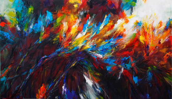 화면에 구현된 생각하는 갈대는 강렬한 색채와 곳곳에 두껍고 불규칙하게 쌓아 올린 물감들을 통해 인간적 존엄의 자유를 확보하기 위한 역동적인 퍼포먼스를 펼쳐 보이는 듯하다. 또한 변수현은 모순성과 불안을 과감하게 보여주고 드러내는 것을 통해 부정에서 긍정으로의 시각적 전환을 꾀하고자 한다. 나아가 독립된 개인과 사회적 개체에게 축적된 모든 감정과 경험들이 가감 없이 노출되는 화면은 마치 불꽃놀이의 현장과도 닮아 있다. 인간으로서 인간을 욕망하고자 하는 고백이 공중으로 쏘아지는 승화의 순간에, 그저 하나의 개인으로서 삶을 살아가는 인간 해방과 자유에 대한 신호탄이 터지게 되는 것이다.