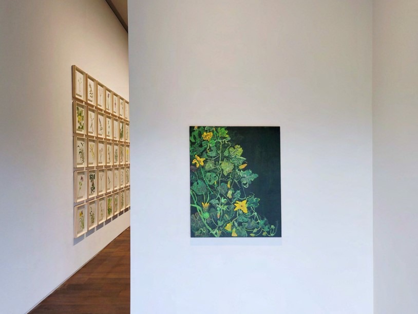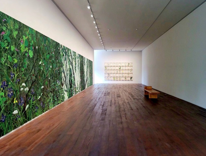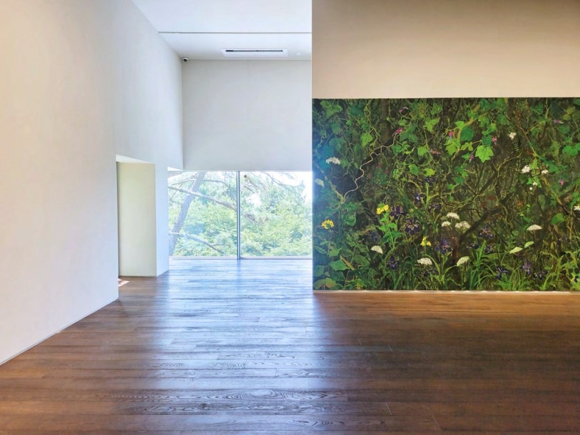 조현화랑(달맞이)는 김종학 화백의 사계절 기획 중 두 번째 전시《SUMMER》를 개최한다. 이번 전시에서는 ʻ봄’을 주제로 했던 3월 전시에 연결하여 여름을 주제로 한 작품들을 선보인다. 조현화랑 달맞이 공간 2개 층을 각각 다른 내용과 설치 형식으로 분배하여 작가가 여름을 느끼고 표현한 2개의 시선을 만나볼 수 있다. 각기 다른 색과 형의 꽃들이 아우성치는 〈판데모니움〉, 시원한 여름 숲을 파노라마로 옮긴 〈풍경〉연작을 통해 여름의 푸름과 싱그러움을 느낄 수 있다. 봄에서 여름으로, 계절의 변화 1979년 설악산에 정착한 김종학은 당시 주류였던 추상화와 단색화의 유행에 흔들리지 않고 자연의 아름다움을 작품의 주제로 삼아왔다. 특히 설악산은 계절마다 다른 이름을 가지고 있을 정도로 계절별 특성이 뚜렷하여 사계절을 연구하기에 최고의 무대다. 지난 3월 조현화랑에서 열린 《SPRING》전에서 작가는 7.8m의 대형 작품을 전시장 입구에 배치하여 벚꽃비 흩날리는 공간에 온 듯 한 압도감을 선사한바 있다. 이번 《SUMMER》전에서 스케일은 더욱 커지고 내용은 촘촘해졌다. 18m에 이르는 대형 캔버스에 그린 숲 앞에 서면 관람객은 광활한 자연 속의 일부가 된다. 또한 꽃의 표현은 핑크빛에 한정되었던 봄의 색채에서 해방된 듯 원색적이고 다양한 색채로 변화무쌍해졌다. 봄에서 여름으로 계절의 흐름만큼 확장된 작품세계를 각 층별로 나눠진 〈판데모니움〉과 〈풍경〉작업에서 확인할 수 있다. 1층 판데모니움(Pandemonium) 작품 제목 판데모니움(Pandemonium)은 ‘대혼란’을 뜻한다. 영국의 문학가 존 밀턴(John Milton)은 대서사시 《실낙원》(1667)에서 지옥의 도성에 ‘판데모니움’이라는 이름을 붙였다. 판데모니움의 어원에는 ‘모든 영혼이 모이는 곳‘이라는 의미를 포함하고 있다. 이번 전시에서 작가의 〈판데모니움〉은 꽃을 비롯하여 벌과 나비, 거미, 잠자리를 등 다양한 곤충과 식물들이 대혼란을 빚고 있는 모습이다. 그야말로 ’모든 영혼이 모인‘형국이다. 그리고 자신이 가장 아름다운 존재라는 듯 각자의 색채를 뽐내고 있다. 덕분에 그림은 소란스럽게 느껴지기도 하는데, 단지 색채들의 아우성 때문만은 아니다. 그림을 가까이에서 볼 때 나타나는 질감 그리고 그 안의 힘이다. 작가는 꽃을 붓이 아닌 손으로도 그린다. 물감을 캔버스에 부어 손바닥으로 펼쳐 그린 꽃잎의 표현, 손가락으로 길게 늘어뜨린 줄기와 잎의 표현에서 작가의 에너지가 고스란히 전달된다. 서양에서는 여름을 꽃이 만개한 모습으로 표현하는 경우가 많다. 특히 북유럽권에서는 이 계절에 꽃이 가장 많이 핀다고 인식하기 때문이다. 〈판데모니움〉의 다양한 꽃이 일순간 만개한 서양적 정서와 우리 산에 피어나는 꽃이라는 한국적 소재를 모두 포용한 작품이다. 2층 풍경(Landscape) 18m에 달하는 대형 작품에는 작가의 대범함과 세심함이 동시에 투영되어 있다. 커다란 고목나무를 중심으로 양옆에 숲이 우거져 있고 뒤에는 폭포가 있다. 폭포는 몇 가지 중요한 역할을 한다. 첫째, 나무의 배경으로서의 역할이다. 폭포의 밝은 색채와 대비되어 나무의 실루엣을 강조시킨다. 이는 나무의 기둥이 더욱 단단해 보이도록 하는 효과를 준다. 또한 나무의 중심이 폭포수 앞에서도 흔들리지 않는 기개를 느낄 수 있도록 한다. 이는 온갖 세속적 유혹과 시류의 흔들림 속에서 깊이 뿌리박고 견뎌내는 예술가의 삶에 대한 상징일 수 있다. 두 번째로 ‘물’의 존재다. 화면 내의 거대한 물줄기는 꽃과 풀 그리고 넝쿨들에 생명력을 강조한다. 마지막으로 화면 전체의 시각적 조응과 함께 보는 사람으로 하여금 시원함과 상쾌함의 감정을 선사한다. 그리고 작가는 관람객의 상상 속에서 숲의 위와 아래를 완성하도록 유도한다. 우리나라의 여름은 높은 온도와 습도로 불쾌지수가 높다. 또한 장마철이 여름에 끼어 있어 강수량도 높고 계절성 우울증까지 유발시킨다. 그래서 여름에 바다로, 숲으로 피서를 간다. 7월에 열린 이번 전시의 〈풍경〉작품을 통해 그림으로 숲을 만나고 전시장에서 피서를 즐길 수 있다. 마지막으로 작가에게 작품의 완성이란 ‘기운생동’이다. 자연을 주제로 하는 작가는 그림에서 천지 만물이 생생히 살아있는 느낌을 주지 못하면 완성으로 인정하지 않는다. 〈판데모니움〉에서 꽃과 곤충, 동물들은 각기 다른 아름다움을 보여주고자 굵은 붓과 신체를 직접 활용한 과감한 터치, 추상적 화면구성 속에 기운생동의 맛이 온전히 전달한다. 그리고 〈풍경〉에서는 폭포와 고목의 상호작용 속 긴장과 조화 그리고 그 사이의 꽃과 풀, 덩굴들에 대한 생명력 있는 묘사가 기운생동 한다. 김종학의 작품들은 결국 ‘기운생동’, ‘생명성’, ‘자연스러움’이라는 키워드로 만나게 된다. 2022년, 조현화랑에서 기획한 김종학의 두 번째 여름 전시를 통해 작가의 손끝에서 탄생한 계절의 매력에 흠뻑 빠져보기를 추천한다. (제공 = 조현화랑)