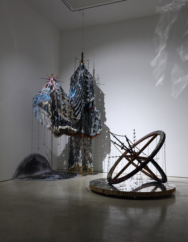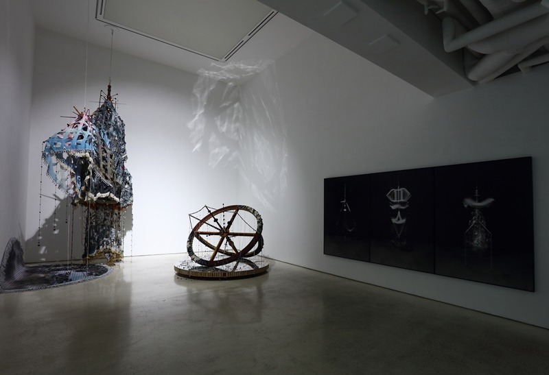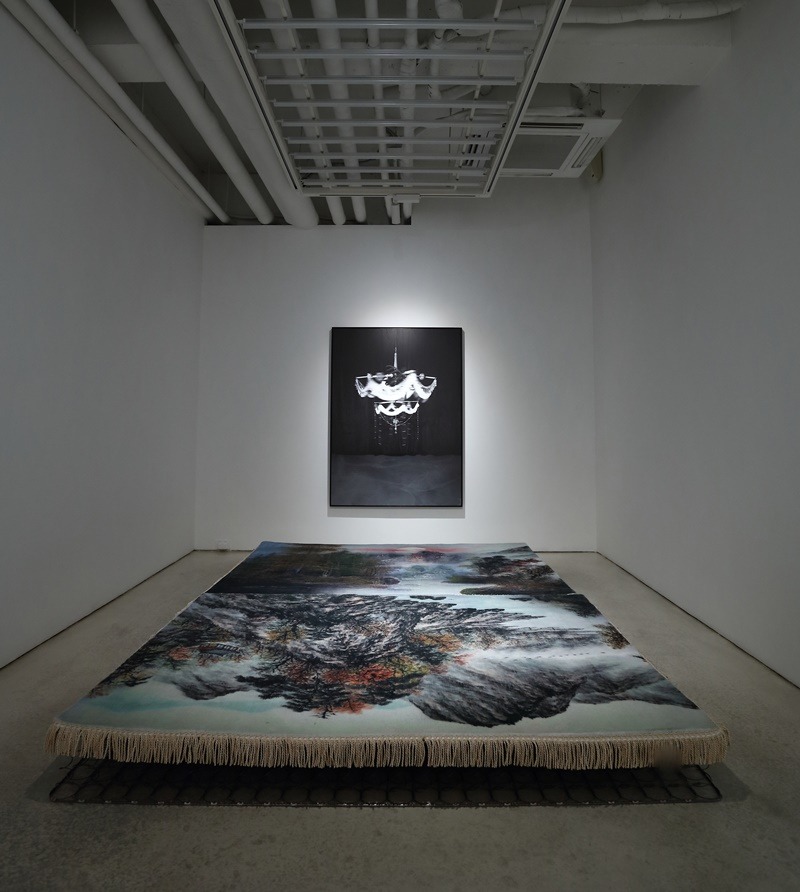 장소 : 봉산문화회관 4전시실 기억 공작소Ⅲ『민성홍』展 민성홍 작가의 작품에 접근하려면 먼저 ‘버려진 것’이란 의미부터 풀어봐야 한다. 우리는 매일 무언가를 버리며 살아간다. 팬데믹 시대를 거치며 더욱더 많아진 일회용품부터 오래되었거나 쓰임새가 다 된 물건까지, 가치 없다고 생각되는 것을 쉽게 버려지고 있다. 그렇다고 민성홍 작가는 환경에 대한 의미나 리사이클링(Re-Cycling)에 집중하는 작가도 아니다. ‘버려진 것’이 단순히 쓰레기를 재활용해 예술적으로 재탄생시키는 것이 아니라 그 속에 담긴 내재성, 관계성, 시간성을 바라보고 있다. 작가는 아마 버려진 것들을 수집하는 행위부터 그 속에 배어 있는 시간의 흔적과 내재된 의미를 귀히 여기는 눈과 마음을 가졌을 것이다. 그리고 그 속에서 파괴되고 조각난 과거를 기록하고 변형시키며 타인과 접점을 발굴해 사회적 관계성을 탐구하고 새로운 생명을 부여하기 위한 섬세한 손놀림의 힘든 과정을 거치면서 결과보다 과정이 더욱더 중요한 의미로 다가왔을 것이다. 이렇게 작가는 수집, 변형, 재조합 세 개의 과정을 통해 잊힐 물건들에 대한 새로운 가치를 찾아 긍정적 의미로 변화시킴으로 예술가로서 “인간의 삶이란?”에 “희망이란?” 같은 화두를 ‘버려진 것’에서 찾고 있는 것이다. 두 개의 산 전시장에 들어서면 상하로 길게 늘어진 일상적 풍경인 두 개의 산을 마주하게 된다. 산속을 자세히 관찰해 보면 수많은 메타포(metaphor)가 숨어있다. 산수화 이미지를 현수막에 출력해 구멍 뚫은 위장막에 박음질로 화려한 레이스를 꾸미고, 구슬 꿰기, 카펫에 출력한 산수화 등 정성 어린 수공예품 같은 다채로운 모습은 의미를 더욱더 복잡한 미궁 속으로 빠져들게 만든다. 또한, 위장막 안에는 옷걸이와 수집된 가구들이 결합해 불완전한 요소가 서로 부딪치는 듯한 파편화된 이 구조물을 보여준다. 이 결합은 개개인의 역사와 경험이 접합된 것으로 낯설고 이질적인 모습이 보여주는 상호보완적 요소를 피력하는 형상이며, 그 위에 덮인 장식적인 요소가 가득한 산수화 위장막은 이상적이며 비현실적인 이미지를 통해 한계나 제약과 같은 부정적인 조건까지도 우리의 삶의 일부분임을 인식하도록 해준다. 결국, 각자의 인식과 경험을 접합해 단순화 시킴으로 삶의 본질에 더욱더 명료하게 다가서게 하고 자기보호나 단절인 듯하지만, 산이란 거대한 안식처에서 느끼는 안정감을 통해 우리에게 모든 허물을 감싸주려는 작가의 마음이 담긴 것이라 본다. 두 개의 달 최근 누리호 발사로 우주에 대한 관심이 고조되면서 달 탐사의 청사진까지 제시되었다. 인류 역사와 함께하며 매일 밤, 우리들의 감수성을 자극하고 인류의 진보를 가속화시켰던 달, 예술가는 과연 어떤 모습으로 달을 바라볼까에 대한 호기심을 작가는 이렇게 매력적인 설치작업으로 답해 주었다. 거울 위 두 개의 축을 가진 팽이 형상의 뼈대 위에 다양한 장식물로 접합되고 이어진 모습으로 달을 구조화시킨 것이다. 작품은 좌우 축이 대칭된 모습이지만, 일정한 경계 없이 가변적인 구조물로 바닥에는 바퀴를 장착해 유동이 가능토록 했으며, 거울에 비친 벽면의 일루전을 통해 두 개의 달로 인식되도록 확장시켰다. 이는 고정된 시각에서 벗어나 관객과 호흡하길 바라는 작가의 외적인 소통의 방법이며, 버려지고 상처받은 낡은 것들의 연민과 번민을 모아 닦고, 칠하고, 장식하는 수행적 내적 소통과 결합하여 감춰주고 보듬어 주는 치유의 달로 형상화 시켰다. 이 작업은 1959년 출간된 김수영의 시집 「달나라의 장난」에서 살고자 하는 의지와 그것을 불가능하게 하는 한계 상황에서 갈등하는 한 개인의 상황적 모순을 모티브로 한 작업으로 불가능하게 하는 현실 사이의 갈등과 슬픔을 극복하려는 의지를 재해석한 것이다. 추가로 제시한 사진작업 시리즈 4개의 작품을 통해 축을 기준으로 팽이가 회전하면 구가 되고 달이 되는 모습을 시각적으로 설명한다. 회전을 통해 또 다른 영역이 형성되고 우주적인 이미지가 충돌하는 구조를 연출하여 가시적인 영역에서 비가시적인 영역까지 이어지는 작가의 사유를 간접적으로 보여주는 이미지들이다. 그리고 물 작가는 미니멀라이프가 유행인 요즘, 맥시멈라이프를 지향한다. 작가의 작업실은 쓰레기 폐기장이 연상되는 잡동사니를 모아두며 그 쓰임새를 기다리고 있을 것이다. 작가를 보면 “단순히 버려진 것들은 없으며 쓸모없다고 판단하는 사람이 있을 뿐”이란 말이 절로 나올 수밖에 없다. 전시장 안쪽 또 하나의 쓰임새로 선택된 침대 매트리스 구조물이 바닥에 놓여 있다. 그 위에 버려진 산수화를 출력한 카펫이 덮어져 있다. 이상적이고 관념적인 산수화의 물과 푹신할 것 같지만 구조물이 드러난 스프링은 묘한 불편함과 예민함을 전달하고 있다. 작가는 이 설치물을 통해 “가려진다.”라는 표피에서 “숨긴다.”라는 내피를 함께 보여주는 듯하다. 버려진 산수화의 왠지 자연스럽지 않은 물과 카펫에 덮어진 매트리스 스프링 구조물에 나타난 불완전한 요소를 통해 끊임없이 변화하는 세상의 관계를 맺으면서 자