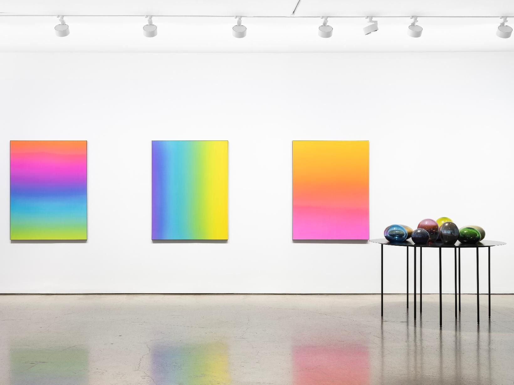 갤러리현대는 독일 작가 마티 브라운(Matti Braun)의 아시아 첫 개인전 《Ku Sol》를 9월 21일부터 10월 23일까지 개최한다. 전시는 다채로운 염료를 실크에 고루 입혀 완성한 아름다운 추상화 연작과 전통 유리공예 기법으로 장인과 협업하여 탄생한 유리 조각, 인도 영화 감독 사트야지트 레이(Satyajit Ray)의 미실현된 각본 〈The Alien〉에 영감을 받고 제작한 실험적 공연의 사진 작품 등 대표작 50여 점을 대거 선보인다. 독일 작가 마티 브라운은 미술뿐 아니라 문화, 역사, 과학 등 다양한 분야에서 상대적으로 덜 알려진 개별 서사를 열정적으로 발굴하고 탐구하면서 거대한 의미망을 직조해간다. 비크람 사라바이(Vikran Sarabhai), 마하마타 간디(Mahatma Gandhi), 르 코르뷔지에(Le Corbusier), 인도의 우주개발 프로그램, 사트야지트 레이(Satyajit Ray)의 미실현 각본 <외계인(The Alien)>부터 스티븐 스필버그의 <E.T>까지, 특정 인물과 동서양의 시공간을 가로지르는 문화의 이동과 교류 및 변화 작용을 연구하며 제작된 그의 작품은 관람객이 정형화된 해석의 틀에서 벗어나 본인만의 서사를 창조하며 작품을 해석하는 기회를 제공한다. 전시 제목 ‘Ku Sol’은 문화적 언어적 연결고리를 만들어내는 작가의 작품세계를 시적으로 반영하고 있다. 달을 뜻하는 핀란드어 ‘kuu’와 태양을 뜻하는 라틴어 ‘sol’을 조합하여 만든 자연적이며 우주적인 제목은 어떠한 대상을 재현하지 않으며 상호주관성과 다의성을 내포한 그의 작품과 일맥상통한다. 둥근 테이블 위에 놓인 색색의 유리 조각은 마티 브라운이 바이에른 주(州)의 전통 유리공예 기법으로 유리공예 장인과 협업하여 완성했다. 작품의 둥그스름한 형상은 머나먼 우주의 행성이나 미디어를 통해 끊임없이 재생산된 외계인(이방인)의 낯선 안구나 외계 생명체의 알을 연상시킨다. 마티 브라운의 유리 조각은 SF나 외계인에 대한 작가의 개인적 관심뿐 아니라 미지의 세계를 향한 작가의 시선을 은유하는 또 다른 ‘눈’으로도 해석할 수 있다. 동시에 공예와 예술이라는 두 장르를 넘나들며 예술담론 내에서 유리라는 매체가 규정되는 방식에 도전하고, 장르 간의 구분을 흐리면서, 보다 광범위한 영역에서 매체를 실험을 하는 마티 브라운의 작품 경향을 잘 드러낸다. 실크 추상화 〈무제〉 연작도 재현의 부재나 형태의 초월이라는 측면에서 '외계인(이방인)'이라는 존재의 특성과 상응하는 의미를 지닌다. 마치 우주의 광선이나 빛과 어둠을 넘나드는 듯 신비로운 광채를 머금은 표면은 새로운 시공간의 차원을 여는 인상을 선사한다. 마티 브라운은 2008년부터 실크 작업을 시작했으며, 초기에는 기하학적 패턴, 선, 광선 모티브로 바틱(Batik)을 제작했다. 2014년부터 색상이 혼합된 실크 추상화를 시도했으며, 매끄럽고 정교하게 짜인 비단 판 위에 염료를 뿌려 매우 섬세한 색의 스펙트럼을 창조하는 실크 추상화로 점차 변모하였다. 그의 매혹적인 실크 추상화는 종교적이고 명상적이며 동시에 최면적 분위기를 지닌다. 실크 추상화는 실크의 역사와 직물 생산의 전통적 기술에 관한 마티 브라운의 치밀하고 심도 깊은 연구가 바탕이 되었다. 작가는 고대부터 종교적 혹은 제의적인 목적으로 사용된 비단이라는 소재에 강렬하거나 아주 절제된 색을 입힘으로써, 실크를 전통적 소재의 맥락에서 분리시키는데, 이는 마티 브라운의 작품세계에서 중요하다. 작가가 탐구하는 문화적 유산과 상호관련성 등의 관련 이야기와 주제는 작품에 관한 설명적인 요소로 작용하기보다, 관람객을 새로운 시각적 경험과 의미를 찾는 여정으로 안내하기 때문이다. (출처: 갤러리현대)