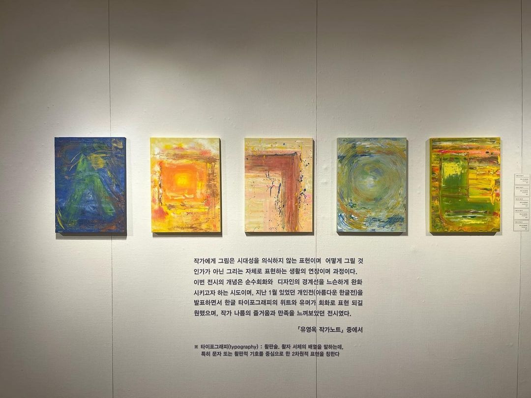 유영옥 개인전 "아름다운 한글" 대백프라자갤러리 A관, 10/4(화)~10/9(일) 한글창제 576돌을 맞아 한글 자음과 모음으로 표현한 회화∙디자인 작품을 선보인다. (출처 = 대백프라자갤러리)