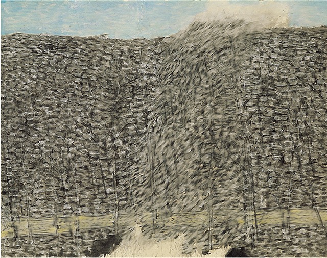 2022 black ink and powder of white and gouache on korean paper 200 x 212 cm