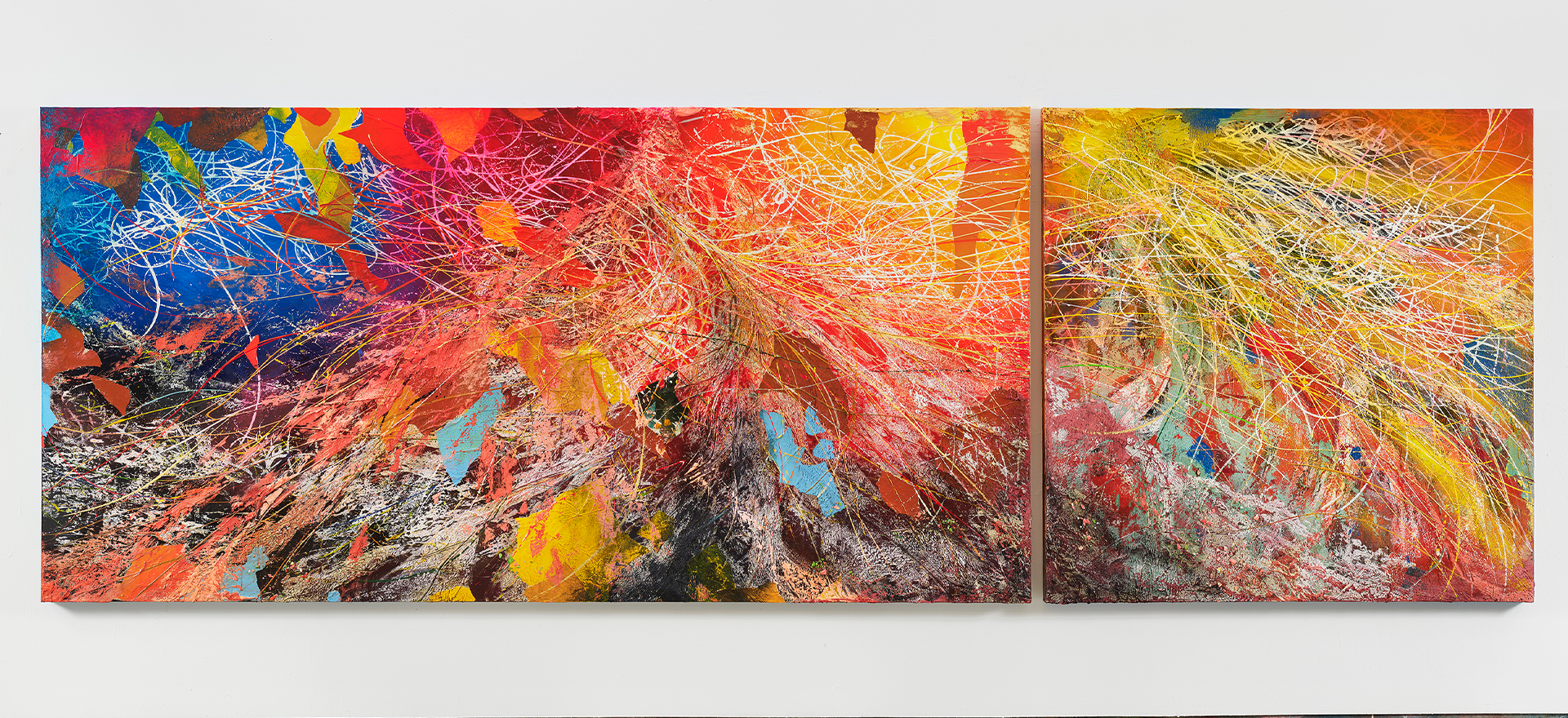 가나아트는 스트리트 아트와 캘리그래피의 특성을 결합한 독창적인 추상회화에서부터 대형 벽화, 사진, 비디오, 조각에 이르기까지 다양한 예술 세계를 보여주고 있는 호세 팔라(José Parlá, b. 1973)의 개인전, 《Breathing》을 개최한다. 본 전시는 전시의 제목과 동명의 연작 회화인 그의 신작 <Breathing>을 공개하는 자리이다. 특히 이번 전시는 2021년 코로나바이러스 감염으로 수개월간 병원에서 생사의 기로를 넘나들었던 작가가 그 복귀를 알리는 자리라는 점에서 그 의미를 더한다. 더는 그림을 그리지 못할 수도 있다는 의사의 진단을 반증하듯, 그는 다시 일어나 더욱 강인한 생명에의 의지를 보다 심도 있는 색과 선을 통해 작품에 옮겨냈다. 그 결과물을 디트로이트의 라이브러리 스트리트 컬렉티브(Library Street Collective), 뉴욕의 브루클린 미술관(Brooklyn Museum)에 이어 가나아트센터에서 관람할 수 있다. 포스터, 물감, 캘리그래피 등이 겹겹이 쌓여 만들어낸 레이어로 이루어진 호세 팔라의 작업은 작가의 자전적 이야기에서부터 그에게 영감을 준 각 도시의 역사에 이르기까지 다채로운 층위로 이루어져 있다. 팔라는 신체의 움직임이 남기는 독특한 필획을 통해 도시 생활과 그곳에 사는 사람들의 삶을 투영하는 작업을 해왔다. 작가는 거리의 벽이 동시대의 역사를 투명하게 반영하고 이를 축적하고 있다 이해하고, 작업에 스트리트 아트에서 발견할 수 있는 다양한 언어와 상징을 내포함으로써 시간과 집단적 기억의 흐름을 포착하고자 한다. 그의 작업은 영국 박물관(The British Museum), 페레즈 미술관(Perez Art Museum), 올브라이트 녹스 미술관(The Albright-Knox Art Gallery) 등에 소장되어 있으며, 특히 맨해튼에 위치한 세계 무역 센터(World Trade Center)의 로비에 영구적으로 설치된 90피트 넓이의 대형 벽화, <ONE: Union of the Senses>(2014)로 명성을 얻었다. - 작가노트 : “조지 플로이드도, 코로나바이러스 사망자들도 죽어서는 안 될 사람들이었습니다. 영적인 차원에서, 그들이 내뱉은 마지막 숨결이 우리에게 깃들었고 이제 우리가 행동해야 합니다.” – 윌리엄 J. 바버 2세 목사 숨은 영혼을 시시각각 새롭게 합니다. 영혼이 쉬는 숨은 집단적 생리(collective physiology) 측면에서 우리를 다시 채워줍니다. 숨은 새로운 연결에 가교를 놓고 신체와 기억으로 말미암아 하늘에 비추어 스스로를 돌아보게 하는 예술입니다. 우리는 숨과 그 숨이 제공하는 인식(awareness)이라는 보편적 선물을 공유합니다. 시간을 들이는 것, 고요함을 즐기는 법을 익히는 것, 속도를 늦추는 것은 변화의 물꼬를 틀 도구로서 집단적 치유를 불러일으킵니다. 숨은 우리의 행동을 통해서만 보이게 됩니다. 우리는 숨을 쉬며 태어나 숨을 거두며 죽습니다. 숨은 우리의 사고와 영감과 영혼을 살찌우는 신성한 창조의 과정에서 일어나는 최초의 행위입니다. 숨은 언제든 우리를 떠날 수 있으므로 절대로 당연시해서는 안됩니다. 스스로를 위한 시간을 되찾아야 합니다. 명상하고 사색하고 집중하며 차분히 숨을 쉬세요. 이렇게 하는 것만으로 충분한 사회 정치적 행위이자 메시지가 됩니다. 역사적으로 지금 이 순간, 우리는 코로나바이러스의 충격을 집단적으로 경험하고 있습니다. 또한 전세계 사람들이 TV와 SNS를 통해 “숨을 못 쉬겠다”고 호소하는 조지 플로이드를 목도했고 이는 압제적이며 파시스트적이고 인종 차별적인 체제에 저항하는 의식을 두들겨 깨웠습니다. 세계 각지의 무수한 사람들이 친구나 가족이 아파하거나 죽을 위기에 처하는 모습을 지켜봤고, 몹시도 급격하게 변하는 세계에서 그 어느 때보다 같은 인간으로서 서로에게 깊은 동질감을 갖게 되었습니다. 이러한 급격한 변화의 속도는 우리에게 생명을 주는 호흡이라는 단순한 행위에 반하는 것입니다. 우리는 예술을 통해 새로운 호흡의 장에서 서로를 일깨우고 또 지탱할 수 있습니다. 숨은 곧 생명의 징후입니다. 동명의 <Breathing>이라는 제목의 그림들이 한국 서울에 위치한 가나아트센터에 전시됩니다. <Breathing> 연작은 작품마다 다른 표제를 달고 있으며, 2021년 제작이 시작돼 2022년에 마무리되었습니다. 이 연작에 속한 회화와 조각들의 작업 시기는 제가 코로나 위중증으로 인해 뉴욕의 마운트 시나이 병원에서 세 달간 혼수상태에 빠졌다가 깨어나서 회복하던 기간과 맞물립니다. 이 글에서 제가 설명하는 순서는 작업을 마친 순이며 작품을 공개한 순서와는 무관합니다. 첫 번째는 뉴욕 브루클린 미술관에서 전시 중인 작품으로 제목은 <Ciclos: Blooms of Mold> 입니다. 두 번째는 브루클린에 있는 제 작업실에서 아직 작업 중인 미공개작입니다. 세 번째는 최근에 디트로이트의 라이브러리 스트리트 컬렉티브(Library Street Collective)에서 전시했던 <Polarities>라는 작품입니다. 이 그림들은 생명을 이루는 가장 단순한 행위인 숨을 주제로 합니다. 겹겹의 물감, 선, 단어, 질감, 콜라주를 통해 세계가 집단적으로 경험하고 있는 정치·사회적 불안과 보건 문제를 함의합니다. (출처 = 가나아트)