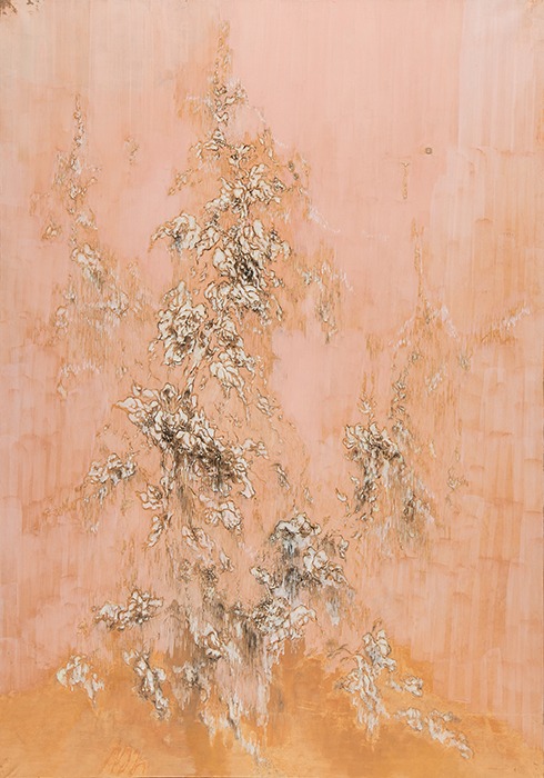 작품의 제작에 사용되는 주 재료는 한지에 토분과 안료, 목탄 등이다. 미색의 순수한 한지에 토분을 쌓아 올려 만들어지는 재질감과 따뜻한 색감이 안정감을 주고, 내가 즐기는 목탄을 이용한 드로잉은 거칠은 생명력을 표현하는데 효과적이다.