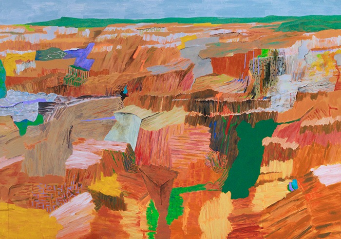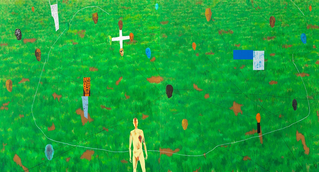 전시 장소 : 3F - 박인우 개인전 《인간, 大地-그 사이 Human, Earth – In between》 오랜 기간 생계형 도시생활 속에서, 절실했던 땅과 인간에 대한 내밀한 통음을 통해 내가 설 자리를 찾아 나서는 자전적 서사에 집중했던 도정을 표현하고자 했다. 뭇 생명들의 생노병사란 거대순환을 받아내는 이 땅 곳곳에서 황당한 일들이 벌어지고 있다. 폭염, 꺼지지 않는 산불, 대홍수- 또 땅위엔 AI가 주인이 되도록 인간이 재촉하고 있다. 과학의 ‘발전'과 ‘호기심'은 이쯤에서 멈춤 들이 일어나길 바란다. 빽빽이 나무가 차있고 곤충과 짐승이 살아가는 원초의 땅을 생각한다. 그 땅 위엔 나만의 은밀한 숲이 있다. 상상과 실재가 교차하는 숲이다. 원래 그 땅위에 인간들 각자의 삶 이 있었다. 이제는 잡초가 흔적을 지우고 또 다른 생명들을 키워내고 있다. 절대 다수의 무시된 존재 잡초와 민초들이 만들어 내는 진정한 아름다움이 보이기 시작했다. 인간-대지 사이엔 풀이 있었다. 치유의 유일한 공간이다. (출처 = 금호미술관)