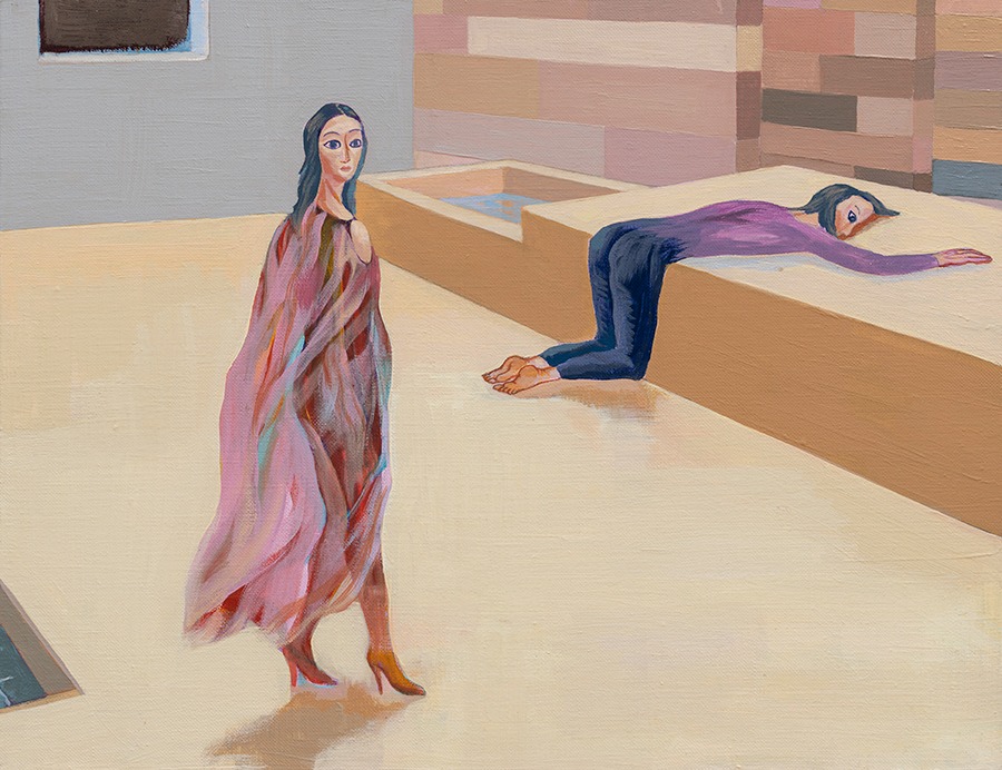 자신의 느낌을 면밀히 감지하고, 기억하고, 소환하는 작가의 그림에는 많은 타인이 등장한다. 하나의 그림 속 여럿의 인물은 같은 공간에 있으면서도 결코 서로의 눈을 마주치지 않는다. 그들의 눈은 저마다 자신의 세계 안으로 깊숙이 들어가 버렸다. 서럽고 불안한 것은 매 한가지인데 정작 말은 꺼내지 못한 채 하릴 없이 시간만 죽인다. 같은 곳에 있지만 마음의 크기나 온도가 다르다. 누군가는 파도가 다가올 때 뛰어들고, 누군가는 멀찍이 서서 관망한다. 이도 저도 아닌 마음으로 파도와 모래사장 어중간한 곳에 서서 두리번거리는 이도 있다. 사랑 영화를 준비할 때도 각자의 욕망을 한 가지로 에두를 수 없다. 갇힌 여인의 표정은 하나의 의미만 갖지 않는다. 이 모든 오만상의 타인들이 제각기 다른 얼굴로 자신 안으로 침잠할 때, 그들이 도착하는 곳은 어디일까. 그곳은 그림을 그리며 가장 먼저 작품의 관객이 되는 작가 자신의 방이며, 그림을 보는 관객 자신의 방이다. 그러니 어쩌면 그림 속 인물들이 서로의 눈을 마주치지 않는 이유는 그들 모두가 ‘나’이기 때문일 것이다. 화기애애한 분위기이든 불화이든 간에 ‘나’의 자화상들이 눈길을 주는 관계를 만든다는 것은 어색한 일이다. 그들은 그저 그림의 시간 안에서 자신을 느낀다.