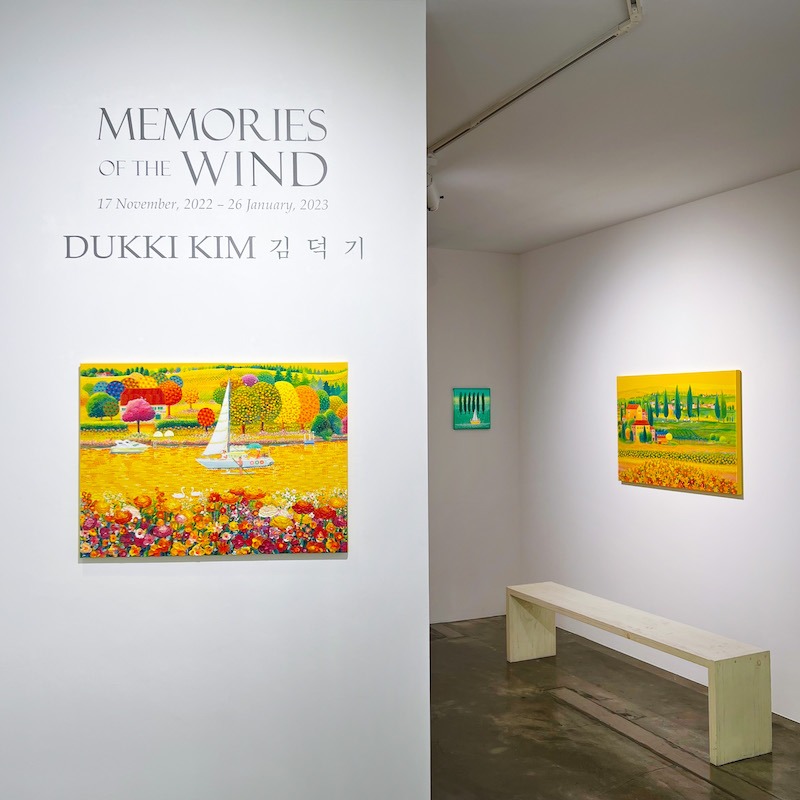 소울아트스페이스는 2022년 11월 17일(목)부터 2023년 1월 26일(목)까지 김덕기의 <Memories of the wind: 바람의 기억>展을 개최한다. 소울아트스페이스를 통해 항상 새로운 작품을 발표하는 김덕기 작가가 올해는 물 위의 돛단배를 주소재로 다수의 신작을 준비했다. 이번 전시는 여행시리즈를 중심으로 정원(가족)시리즈와 특별히 아이패드 드로잉 작품을 최초로 공개하는 자리로 마련된다. 올해 초, 공개와 동시에 매진을 기록한 NFT도 감상할 수 있는 <Memories of the wind: 바람의 기억>展에는 총 30여점의 작품들을 만날 수 있다. 햇살에 반짝이는 수면 위로 하얀 요트를 띄운 사람들은 돛을 올려 항해를 시작한다. 오직 바람이 이끄는 힘에 의해 앞으로 나아갈 동력을 얻는 돛단배처럼 힘찬 여정의 출발점에 선 사람들에게 희망을 전하듯 김덕기의 화면은 활기차고 평화롭게 펼쳐진다. 캔버스에 담아내는 풍경들은 기억을 꺼내어 옮기는 즐거운 과정이자 놀이라고 작가는 말한다. 그러면서 팬데믹으로 발이 묶였던 지난 3여 년간, 당시의 여행이 즐거웠던 이유를 깊이 생각해보았다고 한다. 자신에게 좋은 경험이 된 여행이었지만 그동안 힘든 시간을 보낸 이들에게도 본인과 같은 경험을 그림을 통해 나누면 좋겠다는 바람을 가지고 전시를 준비했다. 이번 신작에서 돛단배와 함께 주요하게 다뤄진 소재는 물이다. 강과 시내, 늪이 둘러싸인 환경에서 자란 작가는 풍경을 그릴 때 물 표현을 즐기는 편이다. 이전 여러 작품에서 크고 작게 바다나 호수가 표현되긴 했지만 물을 메인 주제로 전면에 내세운 건 처음이다. 그래서 공개된 작품 대부분에는 ‘레만’, ‘젬파흐’, ‘루체른’, ‘볼프강’과 같이 호수명이 타이틀로 사용되었다. 물을 그릴 때에는 보다 생기 있고 풍성한 장면 연출을 위해 윤슬 표현에 집중한다. 태양에 의해 반짝이는 잔물결은 밝은 빛으로 세상의 어둠을 물리치고 눈부시게 아름다운 풍경을 선사한다. 김덕기는 치유와 긍정의 기운이 작품에 스며들었으면 하는 마음으로 순수성의 회복을 소망하며 작업에 임했다. 이전에 선보이지 않았던 시도들도 돋보인다. 라인드로잉에 굵직한 터치의 페인팅을 믹스하거나 과감하게 비운 구도, 보다 다양한 크기와 촘촘하게 중첩된 색점의 표현은 작품의 깊이감을 한껏 더한다. 높은 완성도와 디테일의 묘사는 작은 것을 소중히 여기는 작가관이 반영된 결과물이기도 하다. 회화에서 색점의 영향력이 중요하듯 라인드로잉에서는 물 흐르듯 한 번의 호흡으로 자연스럽게 연결되는 선의 생명력이 중요하다. 춤을 추는 것처럼 자유롭고 경쾌하게 움직이는 김덕기의 유려한 선묘는 아이패드 드로잉을 전개하기에 적절했다. 디지털의 다양한 펜촉으로 그려낸 의인화된 집, 책을 보고 차를 마시거나 꽃다발을 전하는 단란한 가족의 모습은 페인팅의 붓이나 파스텔과는 또 다른 매력을 선사한다. 사진과 결합된 화려하면서도 꽉 찬 드로잉 또한 흥미롭다. 김덕기가 전하는 행복의 에너지가 바람(wind)이 인도한 여정을 넘어 새로운 바람(wish)을 가지고 힘차게 나아갈 동력을 얻는 뜻있는 전시로 기억되기를 기대한다. (출처 = 소울아트스페이스)