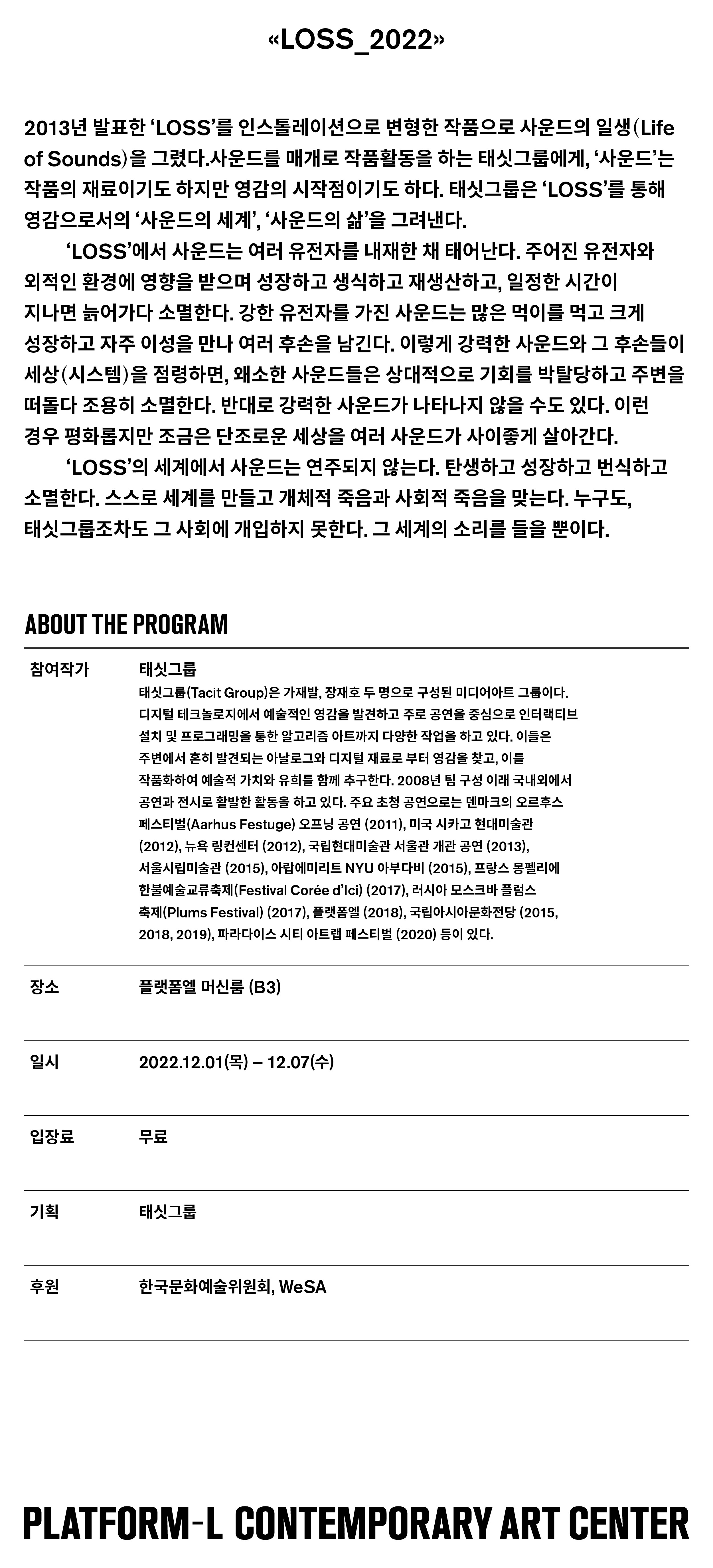 • 			장소 : 플랫폼엘 머신룸 (B3)