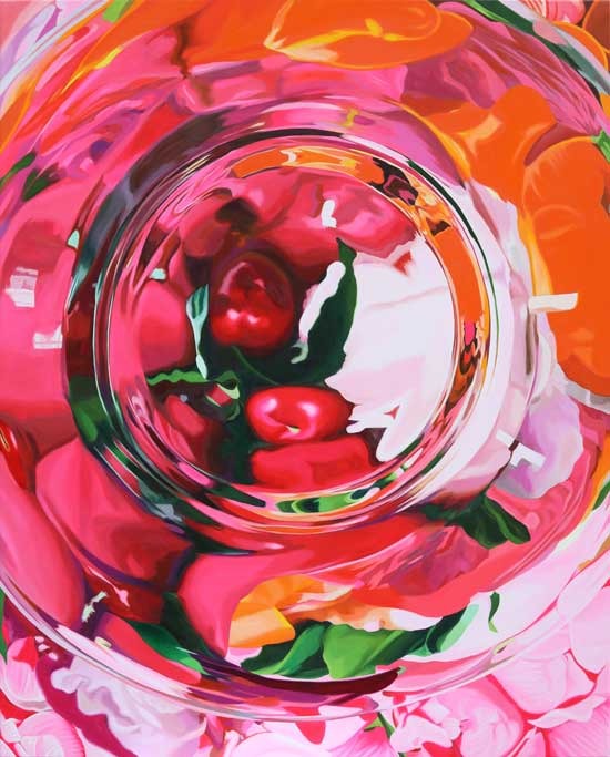 김수현 작가는 인간존재에 대한 물음과 솟아오르는 욕망을 캔버스 위에 표현한다. 투명한 유리잔과 유리잔 너머로 화려한 꽃을 그려 넣는 것은 세상을 투명하게 바라보고 자신의 욕망과 자신을 둘러싼 세상의 욕망을 담는 행위와 합치되어 나타난다. 작품의 가장 큰 특징은 온화하고 밝은 색채의 꽃들로 화면 가득 채우는 것인데 이는 생명이 주는 따뜻한 포용력이 안정감과 다채로움을 선사하며 각자의 존재를 되새겨 보게 만든다. 화폭 위 유리잔은 영롱하게 빛나고 주위를 둘러싼 생명력 있는 꽃들은 그 안에서 완벽한 자신의 모습을 숨긴 채 소용돌이치며 어우러져 섞인다. 이는 사회에서 서로가 서로를 증명하고 공존하는 관계의 소용돌이를 시각적으로 나타내 존재의 순환을 내포하는 의미로 작용한다. 유리잔은 소재 특성상 외부의 자극에 민감하고 연약하게 반응하지만 엄청난 고온의 열과 엄청난 압력의 과정을 이겨내 견고한 구조로 만들어진다. 이처럼 작가는 세상을 바라보는 시각을 유리잔에 빗대어 수많은 장력을 견디며 만들어진 가장 맑은 시선으로 담아낸다. 이번 신작 ‘하늘 위 정원 시리즈’는 거대한 행성처럼 보이는 원형의 물체 위로 몽환적인 꽃의 정원이 펼쳐진다. 마티에르 기법을 활용해 어두운 색상의 물감을 거칠고 두껍게 올린 행성의 표현은 물기를 촉촉하게 머금은 꽃들과는 상반되는 이미지를 보여준다. 이렇듯 누구나 과잉된 욕망 뒤에는 순수하고 고유한 정체성이라는 정원을 가꾸고 있었음을 느낄 수 있다.