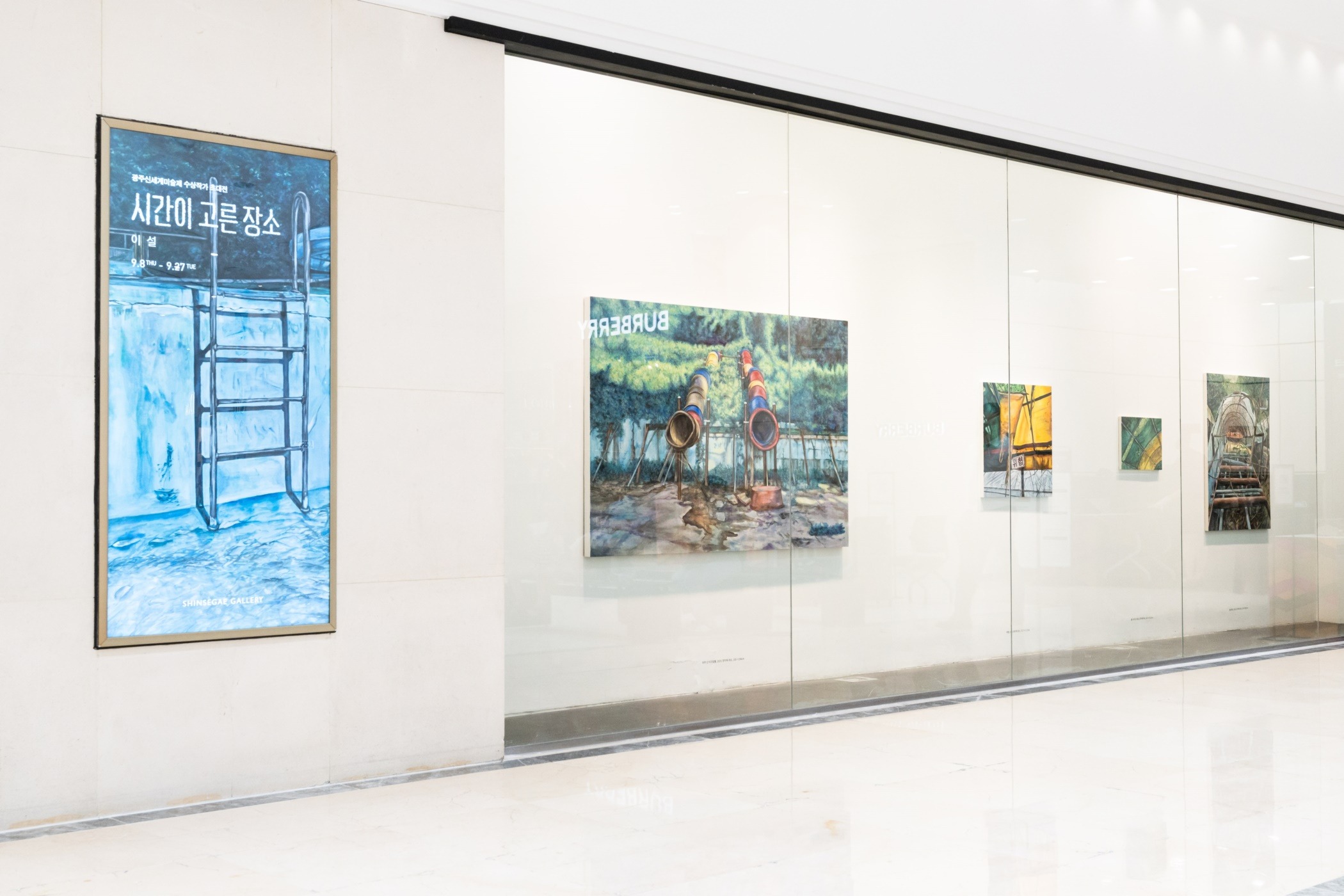 광주신세계미술제는 지역의 젊은 작가들을 발굴·지원하여 지역 미술문화 발전에 기여하고자 1996년부터 개최해 온 공모전입니다. 미술제 수상작가들에게는 개인전의 기회를 통해 작품활동을 지원하고, 그들의 작품세계를 미술계에 알리고자 노력하고 있습니다. 이번 전시는 작년에 진행된 제22회 광주신세계미술제에서 신진작가상을 수상한 이설 작가의 초대 개인전입니다. 작가는 폐허가 된 장소를 배경으로 삼거나, 그곳에서 발견된 사물을 화면 중심에 펼치는 작업을 하고 있습니다. 급변하는 사회가 만들어낸 버려진 공간에서 시간의 흐름에 따라 변화하는 모습을 관찰하며, 소멸(消滅)과 생성(生成)의 시공간적 이미지를 화폭에 풀어내고 있습니다. 이는 단순히 기록과 재현적인 표현방식으로 그치는 것이 아니라, 사라져 가는 존재들이 머문 현장에서 느낀 감정을 내포합니다. 작가는 이를 효과적으로 구현해내기 위해 풍경 속에서 이미 존재했던 사물의 이미지를 오려낸 듯한 ‘컷-아웃(cut-out)’ 기법을 사용하고 있습니다. 마치 잘라낸 것과 같이 그 부분을 흰색으로 칠함으로써 상실과 부재를 의미화하고 있습니다. 이번 개인전에서 선보이는 'cut-out 3'(2021), 'cut-out 4-1'(2022) 등의 연작 역시 ‘컷-아웃’ 기법을 활용한 것으로, 사람들이 북적거렸던 과거와 그 모습이 사라져버린 현재의 모습이 중첩되어 현존과 부재를 효과적으로 보여주고 있습니다. 작품을 마주하고 있으면 과거의 기억을 도려내 버린 것처럼 적막만이 흐릅니다. 더 나아가 '그 자리 그대로'(2022), '사각지대'(2022) 작품들은 사물을 오려 내었다가 전에 있었던 자리에 붙여 놓은 흔적이 보입니다. 이처럼 이설 작가의 작업은 시간을 간직하고 있는 공간에서 사라지기 직전의 사물이나 소멸한 후의 잔해들을 통해 무의식 속에 저장된 기억들을 상기시킵니다. 지난 미술제 심사평에서 이설 작가는 “모종의 장소에 대한 성실한 고찰과 관심, 그리고 그 장소로부터 받은 묘한 느낌의 형상화를 진지하게 그려내고 있는 미덕이 존재”하며, “묵묵히, 마음으로 밀고가는 저력을 느낄 수 있었다”는 평가를 받았습니다. 폐허가 된 장소에 쌓인 시간의 흔적을 관조하며, 자신만의 기법으로 작품을 선보이는 이설 작가의 작품을 통해 잠시 기억의 저편에 숨어있던 장소를 떠올릴 수 있는 시간이 되시기 바랍니다. (출처 = 광주신세계갤러리)