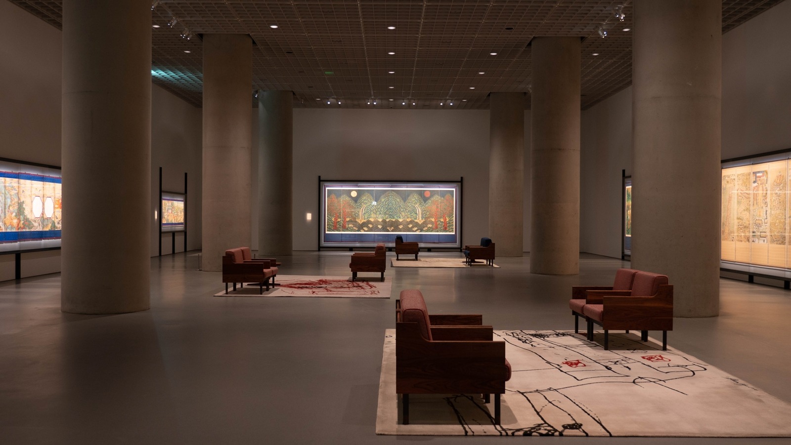 특히, 이번 전시에서는 병풍 고유의 미감을 보다 가까이에서 느끼고 감상할 수 있도록 작품과 관람객 사이의 거리를 좁히는 것에 중점을 두어 연출하였고, 현대적인 분위기의 공간 디자인을 시도하여 전통회화의 세련된 미감을 돋보이도록 했습니다. 나아가 환경을 고려한 전시방안을 모색하여 폐기물을 최소화하고, 재사용이 가능한 재료를 사용하는 디자인을 전시에 적극적으로 활용하고자 노력하였습니다.