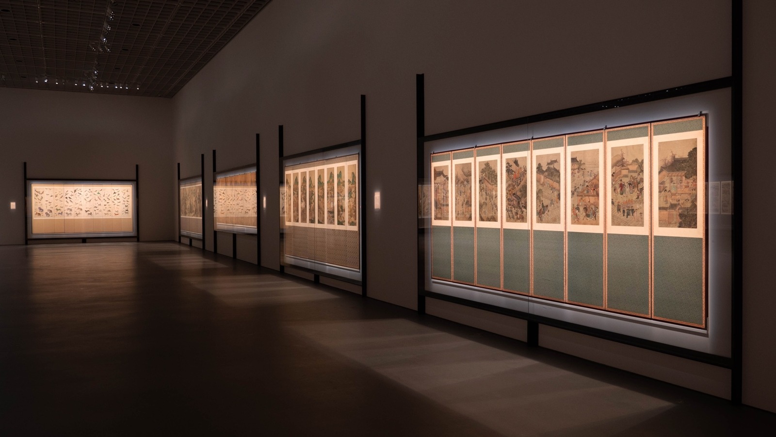 총 7개의 크고 작은 전시 공간들을 활용하였으며, 사용 및 제작 주체에 따라 민간병풍과 궁중병풍으로 테마를 나누어 민간과 궁중으로 대별되는 병풍의 특징과 미감을 감상할 수 있도록 구성하였습니다. 또한, 제작시기를 고려하여 근대병풍은 별도로 구분하여 소개하는데, 이를 통해 새로운 시대의 도래와 함께 변모한 한국 근대 화단의 일면을 살펴보고자 합니다.