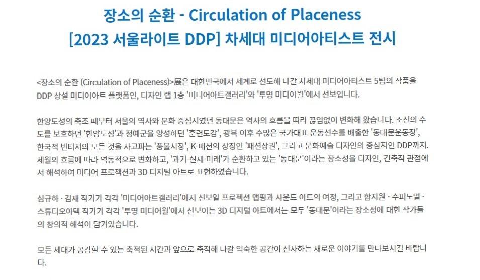 장소 : DDP 디자인랩 1층 미디어아트갤러리, 투명 미디어월 (출처 = DDP)