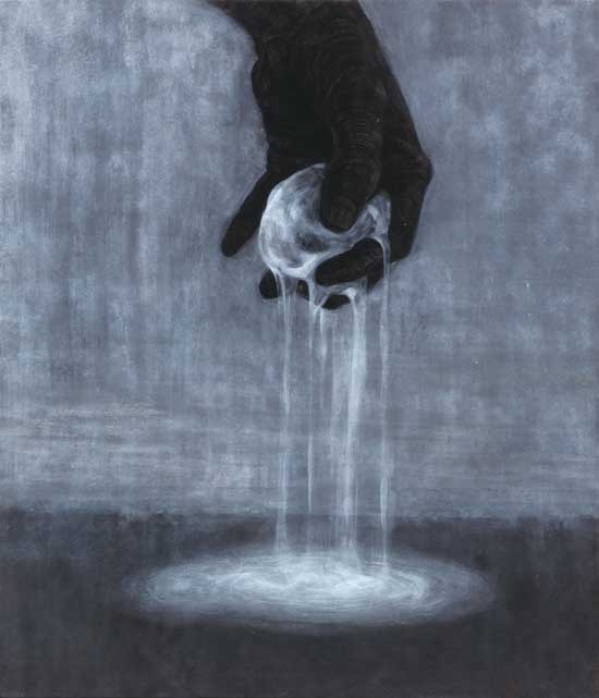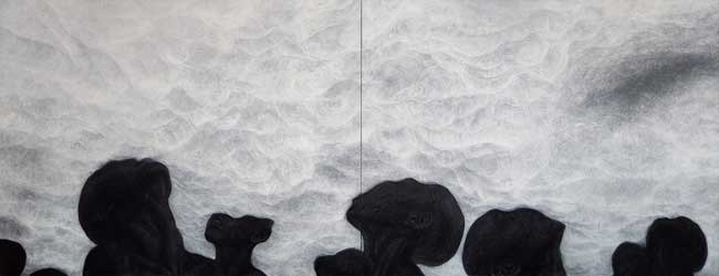 어떠한 대상의 형상은 고유한 형태나 특정 색채에 의해 기억되지만 작가의 작품을 보면 구체적인 형상보다는 작품에 대한 인상이 먼저 떠오른다. 전체적인 작품세계를 관통하는 색채인 흑백의 이미지들은 자신의 내면에 집중하게 된 작가 본인의 경험이자 자신의 존재를 들여다보게 하는 의미를 지녔다. 흑백의 이미지를 그려내는 동안의 호흡은 무의식에 자리한 자신의 내면과 마주하고 고통과 불안의 감각으로 표출된다. 작품 속 인물들은 웅크리거나 누워있는 등 어딘가 고독해 보이는 자세를 연출함과 동시에 무질서한 먹 자국을 그대로 노출한다. 인물의 자세들은 실존적 자아 인식에 대해 심오하게 고뇌하는 내면세계를 대변하고 현재로부터 도피하고자 하는 욕망의 의미로 해석할 수 있다. 먹 자국은 지나온 시간 동안 예기치 못한 일들을 경험하며 생겨난 흔적처럼 보이기도 하며 불규칙하게 중첩된 선들과 먹, 젯소 등 재료의 표현으로 인해 불안한 감정이 고스란히 느껴진다. <숨> 시리즈는 삶의 불확실성, 존재에 대한 물음들을 고민하며 살아있음의 가장 기본적인 숨을 시각적으로 나타낸다. 이때 흰색의 재료인 젯소의 양을 섬세하게 조절하여 미묘한 그라데이션 효과를 줌으로써 짙은 안개처럼 내뿜어지고 흐릿하게 퍼져나가는 숨의 동적인 질감을 풍부하게 표현한다. <실체 없는 고통> 시리즈는 원인이 불분명한 심인성 고통을 통해 정신과 신체가 서로의 존재를 인지하고 작가 자신의 실존을 확인하는 작업이다. 작업은 통증이 발현되는 신체의 일부를 크게 확대하여 그려내어 작가가 경험한 고통의 크기를 직관적으로 전달하고 고통에 대한 이해를 돕고자 한다. 신체 표현에는 주로 흑색 분채를 사용하는데 이는 먹물을 여러 차례 쌓아 올렸을 때와는 또 다른 색온도의 표현과 번짐의 조절이 가능하기 때문에 같은 검정색 분류의 색상이라도 보다 차갑고 짙은 어둠의 표현이 가능하다.