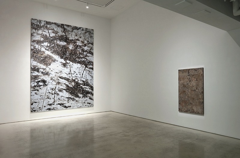 장소 : 4전시실 - 기억 공작소 『차규선』展 전시실 입구에 들어서면 안쪽 틈으로 보이는 높이 4m의 작품이 압도적 공간감으로 긴장감을 조성하며 시선을 끌고 있다. 그러나 관람객이 전시장 내부로 들어서 전체를 둘러보면 큰 작품 외 나머지 3점으로 덩그러니 전시실을 구성하고 있어 어떻게 보면 황량하고 쓸쓸한 풍경으로 여겨질 수 있다. 그러나 찬찬히 하나씩 작품을 살펴보면 익숙하고 편안함 속에 잔잔하게 밀려드는 미묘한 감정들이 묻어나는 조형 언어들로 구성되어 각기 다른 이야기로 기억을 소환할 수 있는 구조이다. 우리 주변에서 흔히 볼 수 있는 눈 날리는 산속의 풍경, 어둠의 끝을 부여잡고 있는 산등성이의 실루엣, 쉽게 밟고 지나칠 수 있는 흙바닥 등 작가가 머물고 품어낸 작고 소박한 자연이지만 모든 사람이 한 번쯤 스쳐 지나간 우연과 그곳에 머물 수밖에 없었던 운명적인 만남이 공간 속에서 일대일로 마주 설 수 있는 감상구조를 원했던 것이다. 대상에 집착하지 않는 작가의 즉흥적이고 감각적인 표현이 타 작품에 방해 없이 화면을 응시함으로 나타나는 잔상효과를 극대화하기 위함이다. 그래서 익숙한 시간과 공간이 우리의 기억 너머 시공간 속 자연과 신비한 교감을 경험케 해 관람객이 증폭된 시각적 유희를 안겨주길 기대한 것이다. 봉산문화회관 큐레이터 조동오 (출처 = 봉산문화회관)