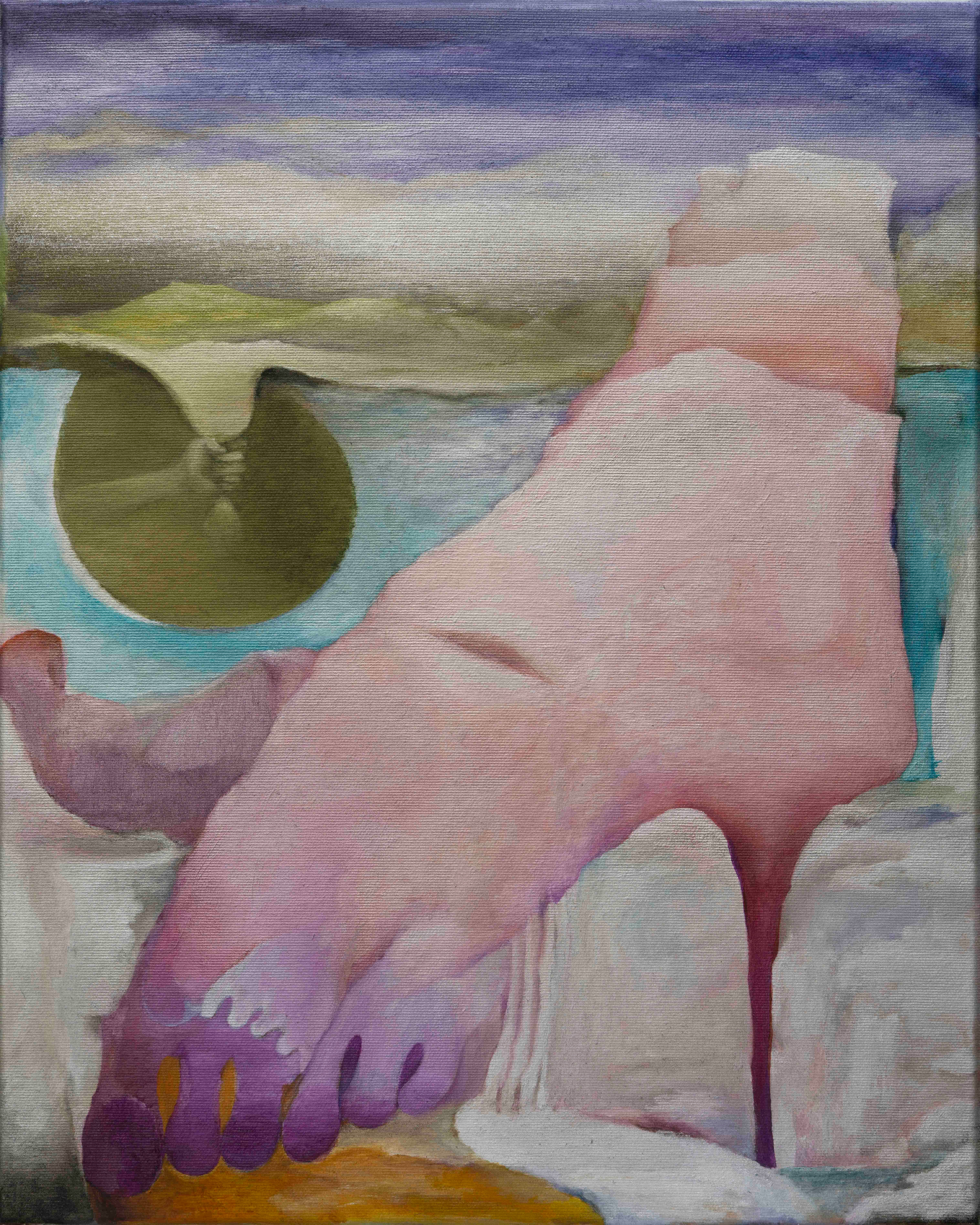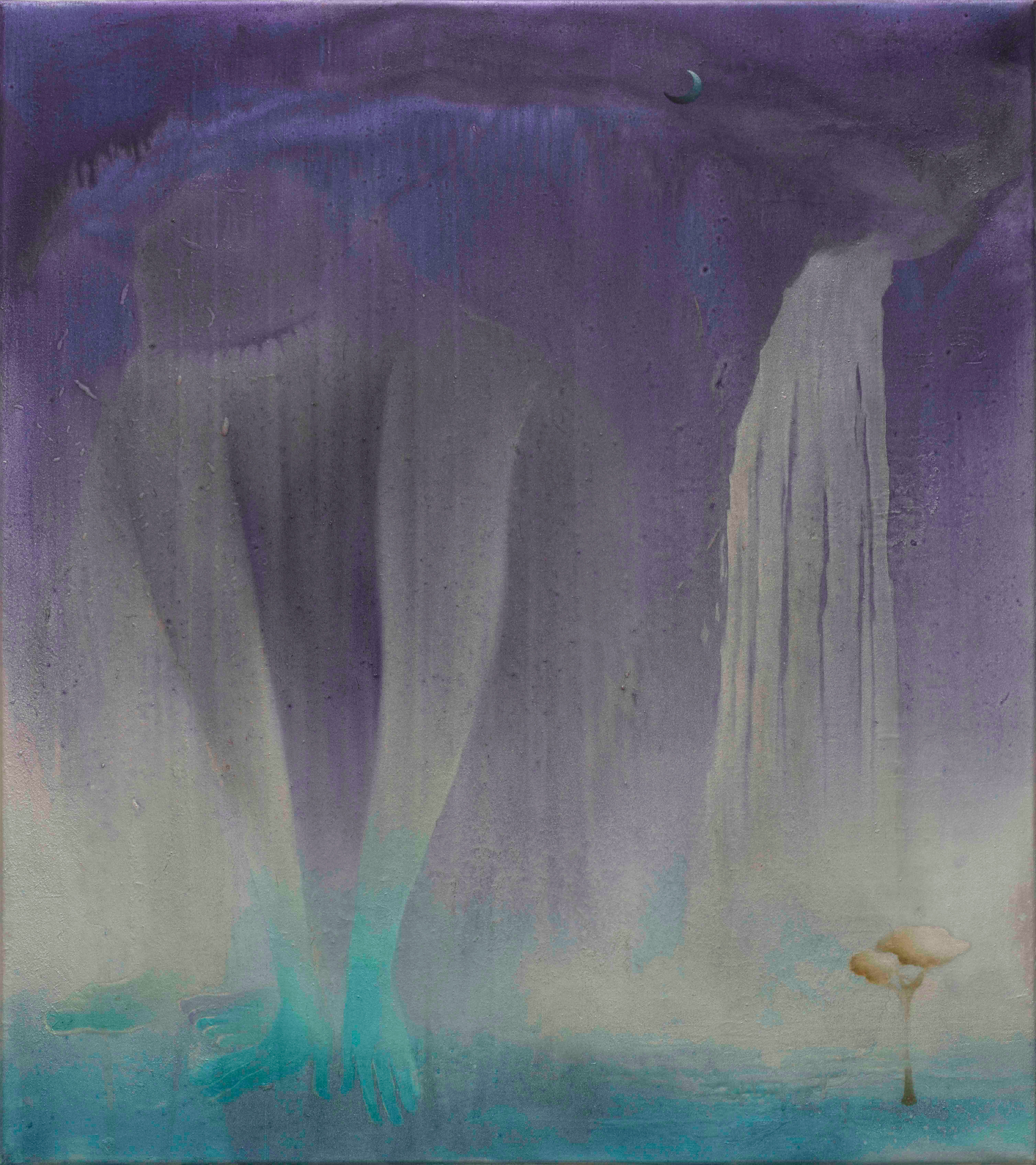 멀리서 수평선을 보면 하늘과 바다의 경계를 구분할 수 없듯, 형태의 경계는 사라지고 색이 존재를 드러낸다. 붉은 노을로 물들어가다 시시각각 검게 변하는 저녁의 하늘처럼 배경과 대상이 섞여 화면을 채운다. 그림은 이름 모를 어느 별의 표면처럼 반짝인다. 문명 이전의 풍경인지, 언젠가 맞이할 그 끝의 풍경인지 알 수 없다. 박성소영의 회화에서는 언젠가의 데자뷰처럼 기시감과 최초의 발견이 주는 생경함이 동시에 느껴진다. 2월 18일부터 4월 1일까지 P21에서 개최되는 박성소영의 개인전 <천산수몽>에서 작가는 그간의 회화적 실험을 선보인다. 우리 존재 탄생을 가능하게 했던 궁극적인 질서 안에서 형성되는 자연, 인간, 자연물들과의 관계와 경이로운 사건을 시각화한다. 과거와 미래가 분화되지 않은 채, 고대인 동시에 미래일 수 있는 비선형적 시간의 축이 작동하는, 태고의 시공간이 상정된다. 이 때에 그의 천, 산, 수, 몽에서 우리는 현실과 꿈 사이에 있듯 익숙함과 낯섦을 동시에 경험할 수 있다. 뚜렷한 대상을 구성하지 않음에도 숨 쉬는 생명체나 고요한 정물 같기도 하고, 원시의 암석이나 바다와 같은 초자연적 풍경을 떠올리게 한다. 이와 같은 이미지들은 물질 탄생의 기원을 상상하게 한다는 점에서 화성 표면의 암석들과도 닮아 있다. 특히 그의 작품에서 광활한 공간감과 어우러지는 점성 강한 유화 물감과 분말처럼 느껴지는 금속성 안료의 조화는 근원적인 광물질의 인상을 만들어내는 동시에 SF 영화의 한 장면처럼 오지 않은 미래까지 상상케 한다. 박성소영의 그림 속 장면들은 물질의 발생 지점으로 거슬러 올라가되 그것으로부터 다시 미래를 바라보게 하는 초시간적 시점을 제시한다. 시간 뿐 아니라 자연과 인간의 관계도 그러하다. 하늘, 태양, 물 등 자연 요소를 암시하는 듯한 형태는 파편화된 신체 일부와 혼재되어 몽환적인 이미지로 연출된다. 반짝이며 녹아 내리는 화면 속에서 자연의 일부가 된다. 천지만물과 사람은 본래 한 몸이라는 만물일체 사상을 떠올리게 한다. 이는 자연이 수단이거나 장식적인 경관에 지나지 않는 현대적 삶의 양식을 재고하게 만든다. (출처 = p21)