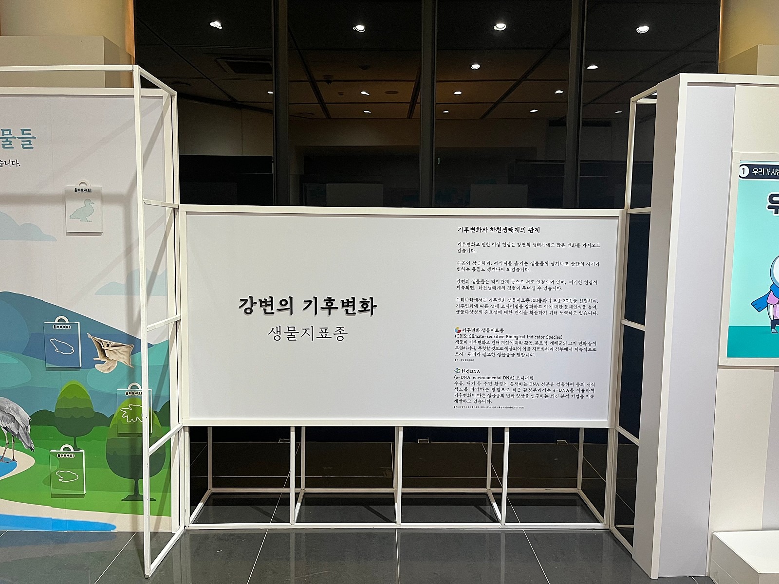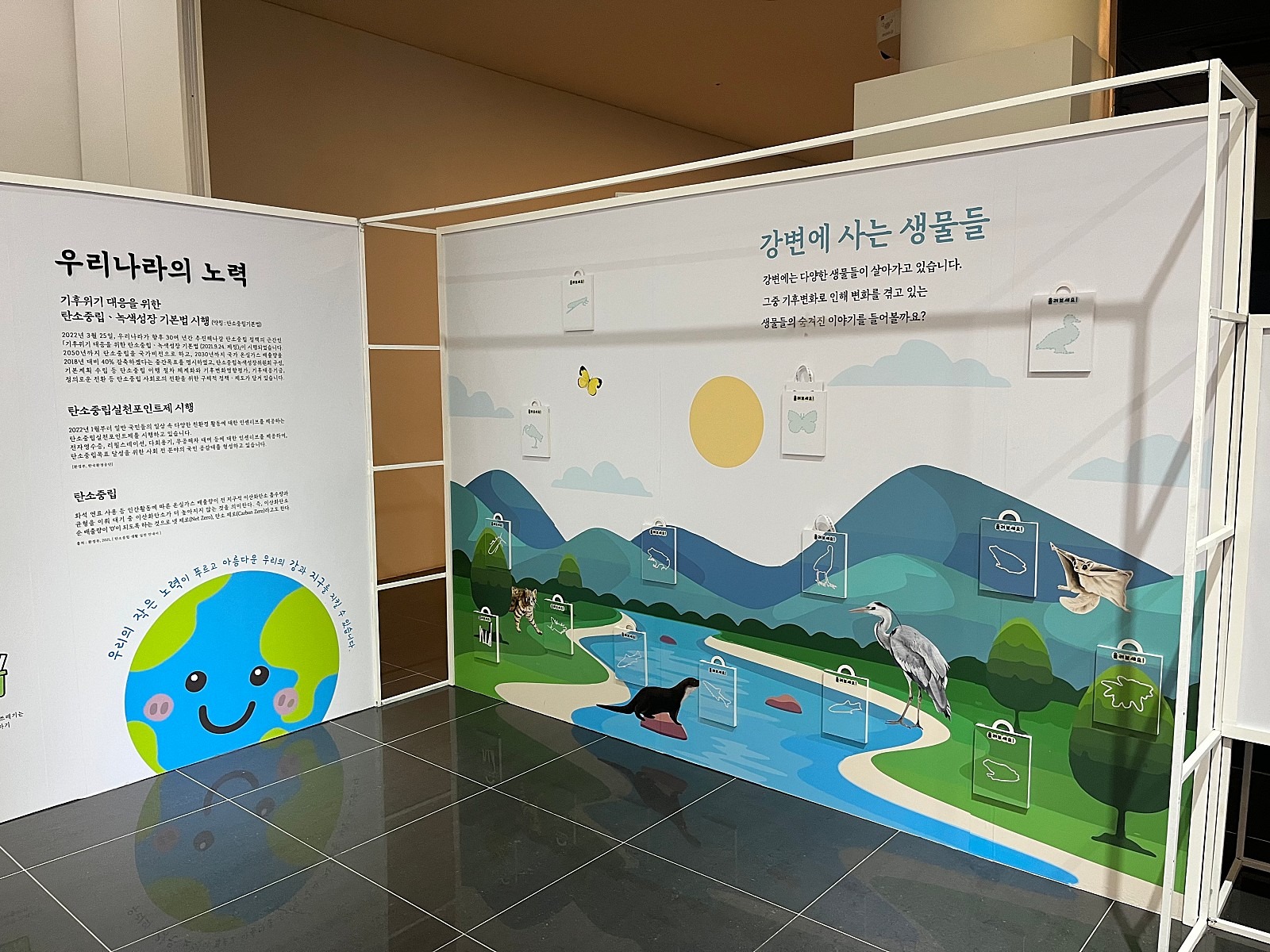 전시내용 : 강문화관의 특성을 활용하여 기후변화로 인한 강 환경 생태계의 변화 및 문제점을 '수생태계 기후변화 생물지표종' 에 초점맞춰 알아보고, 기후변화에 대한 문제인식과 이를 해결하기 위한 '탄소중립' 의 우리의 행동과제를 제시하여 방문객들에게 기후변화 경각심 환기