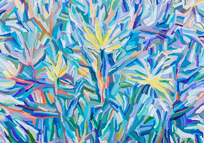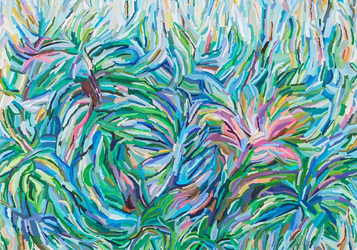 전시장소 : 금호미술관 1F - 절실한 만남 시리즈는 종이를 찢고 색을 입혀 개체화 시킨 후, 캔버스에 붙여가며 화면을 제작한다. 수많은 종이개체가 필연적으로 절실하게 만날 수밖에 없는 것이다. 저마다 자기 색을 내고 낱낱이 붙여진 종이개체(Paper entity)의 부닥침은 복잡하고 다양한 우리 삶을 보여주는 것 같다. 작품마다 다양한 삶의 만남이 서로 끌어안음, 눈 맞춤, 포용, 생동감과 활력을 암시적으로 나타낸다. “꿈틀거리는 형상들 속에서 중심의 색과 형, 생명 탄생에서 시작한다. 주변의 또 다른 색과 형의 탄생이 이어진다. 이를 ‘절실한 만남'이라고 말하고 싶다. 다채롭게 서로 상관하며 만나 퍼져나가는 형상들을 보게 된다.” (작가노트 중에서) 일일이 종이를 찢고 채색한 종이개체를 붙이는 과정은 물감만으로는 표현하지 못하는 그 특유의 상황을 화면 가득하게 만든다. 마치 붓 터치하듯이 붙이는 과정이 나를 무척 흥미롭고 설레게 만든다. 나의 작품은 각자의 색과 형태를 지닌 채색된 종이의 중첩성과 물성으로 표현되어지고, 복잡성(compiexity)과 모호성(Ambiguity)을 가진 작품이다. 비록 시간과 노동이 따르고 힘들 때도 있지만 무한대로 빠지게 만드는 설렘이 있는 작업이다. (출처 = 금호미술관)