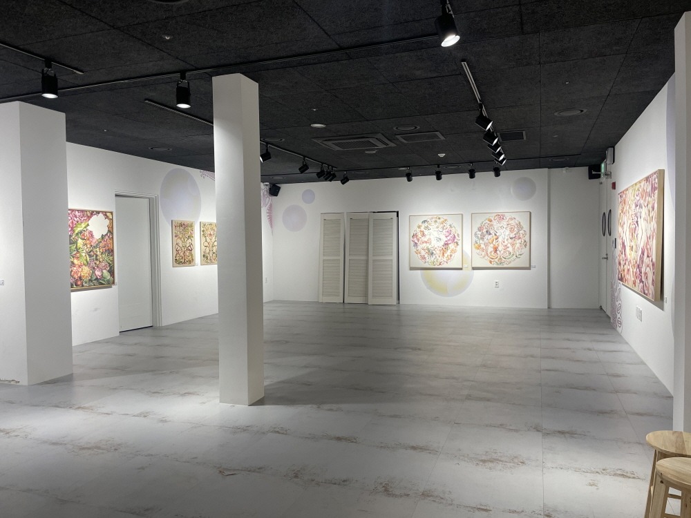 장소 : KT&G 상상마당 춘천 아트갤러리 3 (스테이 B1) - 전시소개 : 추운 겨울이 지나고 꽃이 피어나는 계절을 맞아 시작되는 이번 전시는 인생에서 가장 아름답고 행복한 순간을 표현하는 말, ‘花樣年華(화양연화)’를 테마로 기획되었습니다. 이번 전시에 함께하는 고은주 작가는 식물의 완전체로서 생명에너지의 원천이자 자연을 상징하는 꽃을 주제로 작업합니다. 작가는 임신과 출산 과정에서 겪은 자신의 경험을 작품에 담아 생명의 기원이자 완전체인 꽃으로 표현합니다. 작품 속에서 꽃은 여성의 인생과 모성이라는 큰 틀 안에서 다양한 형태로 피어나며 아름다운 자태로 그려집니다. 만개한 꽃은 새로운 탄생과 동시에 소멸을 상징하며, 아주 짧으면서도 복잡미묘한 감정을 느끼게 만들곤 합니다. 작가는 작업을 통해 아름답게 피어난 꽃의 이면에 숨겨진 인고의 세월과 생명을 틔우려는 의지, 생의 절정에서 가장 빛나는 자신을 스스로 내려놓는 어머니의 모습을 활짝 피어난 꽃으로 담아냅니다. 전시장을 가득 채워 화려하게 피어난 꽃들 사이를 거닐며 2023년의 시작을 기념하는 시간이 되었으면 합니다 작가노트 : 2007년부터 꽃을 통해 소외된 여성을 보게 되었고 꽃잎 이미지를 확대함에 따라 사회적인 개념의 여성에서 존재론적인 개념의 여성으로 시각의 전환을 이루게 되었다. 2012년 결혼을 앞두고 모성과 자아정체성 사이에서 겪던 갈등 그리고 생명의 본성으로의 모성본질의 재인식하고 수용하게 되는 과정을 거친다. 나는 이러한 갈등적 상황을 수용하고 해소하며 또 다른 새로운 생명의 열린 가능성을 만개한 꽃 위에 가변적인 물방울 이미지를 이용하여 표현한다. 그리고 2015년 임신을 통한 잠재적인 어머니 상태에 이르게 되면서 의식이 더욱 확장되었다. 신화에 등장하는 생명의 꽃을 차용하여 이러한 꽃과 물방울을 구분하지 않고 결합시켜 표현하게 된다. 꽃과 물은 순환적인 이미지로 생명을 잉태하고 재생하는 상징 갖는데 이를 결합함으로써 이러한 상징은 더욱 극대화된다. 이와 같이 모성의 인식의 변화는 나의 의식변화를 일으켰고 이는 작업에 자연스럽게 드러나게 된다. 나는 그 동안의 이러한 작업과정 거치면서 사회적인 여성의 개념에서 존재론적인 여성의 개념으로 시각의 전환을 이루고 생명의 본성으로서의 모성으로 재인식하게 되었다. 그 사상적 바탕이 되었던 모성의 개념은 기존의 남성/여성, 주체/타자, 지배자/피지배자로 나누어진 이분법적 사고에서 벗어나 일원론적인 관점에서 바라보는 한국사상과 관련된 생명의 본성으로의 모성의 개념이다. 이러한 나의 작업에서 꽃의 상징을 통한 모성성의 탐구는 여성의 존재의 탐구이자 동시에 인간 존재의 탐구인 것이다. (출처 = KT&G 상상마당)