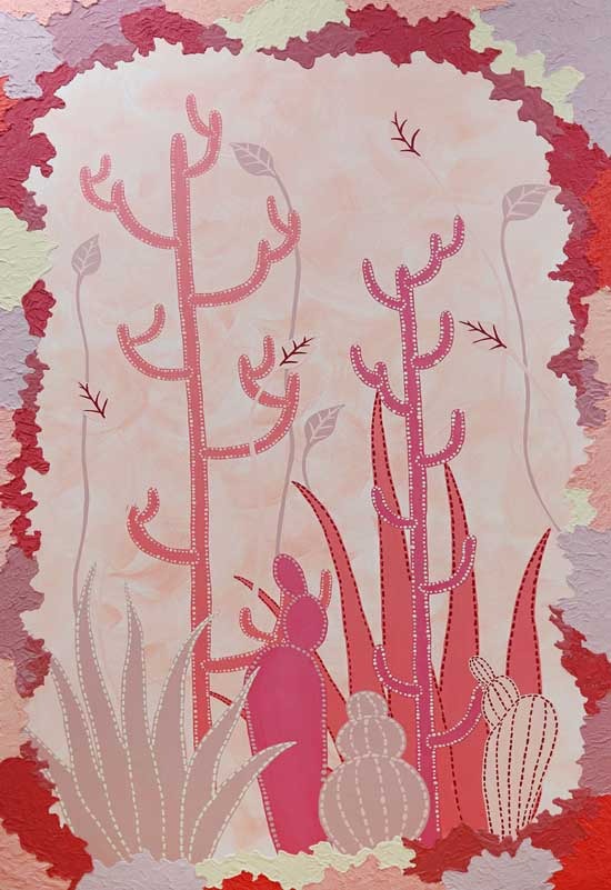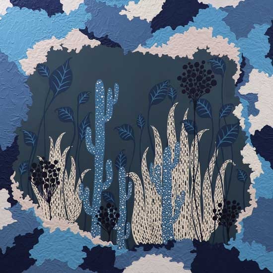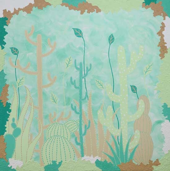 장소 : 갤러리 도스 제1전시관(B1) - 기억이 건넨 위로 김민영 / 갤러리 도스 큐레이터 현재의 삶이 힘에 겹거나 왠지 모를 고독함이 느껴질 때면 기억 속의 지난 추억을 떠올리며 위안을 삼곤 한다. 돌이켜 보니 행복이었던, 사랑이었던 순수한 감수성으로 되돌아가 잠시나마 위로를 받고 새로운 감흥을 얻게 된다. 이렇듯 기억 속에만 존재할 수 있는 추억이기에 우리는 사라지고 잊혀지는 것에 대해 아쉬움을 느낀다. 추억을 붙잡기 위해 다양한 매개체를 통해 기록하고 흔적을 남겨 두고두고 기억하려고 노력하며 이렇게 남겨진 흔적은 일상을 살아가다 이따금씩 꺼내어 보며 당시를 회상하는 매개물이 된다. 추억은 훗날을 살아가는 원동력이 되기도 하는 만큼 우리의 유한한 삶에서 상당히 중요한 부분으로 자리한다. 이에 원유진 작가는 시간이 지남에 따라 사라져가는 소중한 추억을 붙잡아 간직하고자 마음 깊은 곳에 씨앗을 심어 비밀스러운 화단을 가꾼다. 작가에게 화단이란 지난 순간의 분위기나 감정을 캔버스 안에 기록으로 철저히 가두는 동시에 보는 이들로 하여금 이입하여 추억을 연상시킬 수 있는 공간이 되도록 의도한다. 이와 같은 기록의 과정에서 작가 본인을 돌아보는 계기가 되며 창작을 위한 기반을 더욱 굳건히 다진다. 작가는 추억을 회상하는 요소로써 선인장의 이미지를 차용하여 기억의 파장 효과를 이끌어내고자 한다. 선인장은 사막의 뜨거운 태양 아래에서도 스스로 강인한 생명력으로 자라나 강한 모래바람도 거뜬히 버텨내 오래도록 자리를 지킨다. 이처럼 선인장이야말로 작가의 작품세계를 관통하는 상징적인 이미지로 가장 적합하다 할 수 있다. 선인장은 형태뿐만 아니라 크기, 색상이 각각 다르고 다양하므로 다른 식물과는 차별화된 특성과 그에 따른 이미지 자체로 흥미를 느끼도록 유도한다. 주요 작품 소재인 선인장은 직선과 곡선의 형태를 갖고 있다. 자유로운 곡선은 성장과 풍요의 느낌을 주고 직선은 예리하면서도 경쾌한 느낌을 나타내 동적인 조화를 이룬다. 또한 화단의 선인장들과 식물들의 구도에 있어서 심리적인 안정감이 느껴지며 같은 색상의 계열로 배치하여 어느 것 하나 튀거나 방해되지 않고 정서적으로 편안함을 전달한다. 화면은 화단을 둘러싼 비정형의 형상들을 입체로 표현하여 더 깊숙한 곳에 숨겨진 비밀스러운 공간이 된다. 이는 아스라한 구름처럼 드리워 아련한 분위기를 자아내고 우주의 웜홀(wormhole)처럼 시공간을 순식간에 가로질러 기억 저편의 추억이라는 공간을 여행하는 통로가 되어주기도 한다. 이러한 해석을 가능하게 만들어주는 입체의 효과는 재료 선택에 구애 받지 않는 회화 작품 감상에 재미를 더하며 내면의 감각을 자극하고 공간감을 구성하는 데 있어서 중요하다는 특징이 있다. 이번 전시는 지난 소중한 순간들을 기록하기 위해 단순히 추억이라는 씨앗을 움트게 하고 가꾸는 행위의 의미를 넘어 작가 본인의 삶의 태도를 바꾸고 현재의 삶을 살아가는 동시대 사람들과 소통하려는 의미가 함께 내포되어 있다. 작가가 잘 가꾸어 놓은 화단에 뿌리내린 순수한 추억들은 메마른 가슴 속 한구석에 기억으로 자리 잡아 안정과 휴식을 취하게 만든다. 모든 식물은 각자가 원하는 방향으로 위치를 바꾸고 형태를 바꾸는 등의 변화를 보이며 성장한다. 이와 같은 식물의 강인한 생명력이 주는 삶의 에너지를 느끼고 내면의 소리에 귀 기울이며 마음의 정화와 건강한 자아를 찾아가는 위로의 시간이 되기를 바란다. <작가노트> “당신의 마음속 정원은 어떤 모습인가요?” 내면 깊은 곳에 위치하고 있는 비밀스러운 장소에는 오래도록 간직하고자 하는 추억들이 작은 씨앗에 담겨 심어지고 가꿔져서 마음 속 화단을 이루고 있다. 모든 이들의 내면 속에 저마다 다른 형태의 화단이 존재한다고 생각하며 각자 다른 모습의 식물들이 자라나고 그렇게 자라난 식물들은 유년시절의 행복했던 추억일수도, 친구와의 끈끈한 우정의 경험일수도 있으며 사랑하는 사람과의 소중한 시간일수도 있다. 본인의 작업에서 회상하고자 하는 과거의 한 장면과 상황에 따라 다양하게 표현되어지는 색감의 차이는 과거 그 상황의 분위기 또는 감정상태에 따른 차이를 의미한다. 화면을 채우고 있는 다양한 선인장은 매일 떠올리지 않아도 내면 속에 오래도록 간직되는 소중한 추억들이 선인장처럼 매일 들여다보고 정성스레 가꾸지 않아도 그 자리에서 잘 자라난다는 부분에서 공통점을 찾아냈고 화면을 구성하는 하나의 소재로써 사용된다. 화단을 둘러싸고 있는 입체적인 비정형의 형상들은 비밀스러운 내면 속의 장소를 누군가 조심스레 걷어내고 들여다보는 듯한 느낌을 준다. 본인의 작업을 통해 작은 화단을 시각적으로 접한 후, 각자의 마음 속의 화단은 어떠한 모습으로 자리잡고 있을지 생각해보았으면 하는 의도가 포함되어 있으며. 수많은 기억들이 식물이라는 소재를 통해 이미지화 되는 것을 표현하고자 한다. (출처 = 갤러리도스)