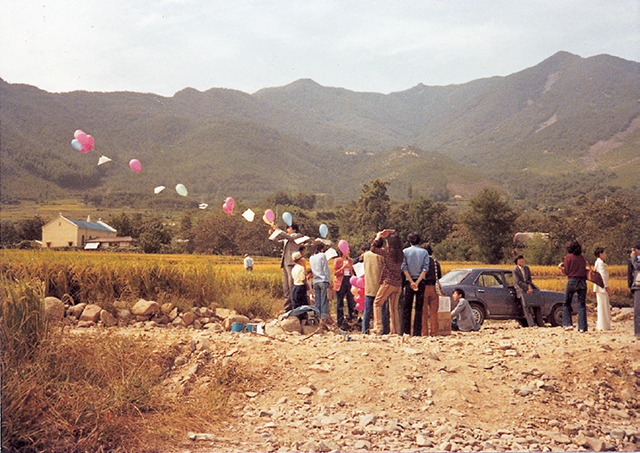 “출구가 어디예요?”를 되뇌며 전시실의 출구를 찾은 관람객이 마지막 전시물인 1978년의 기록사진, ‘풍선을 날리는 행위’를 보게 된다면 김영진의 신체행위 흔적 50여 년에 대하여 “아름답게, 찬란하게”라고 웅얼거리며 유희할지도 모르겠습니다.