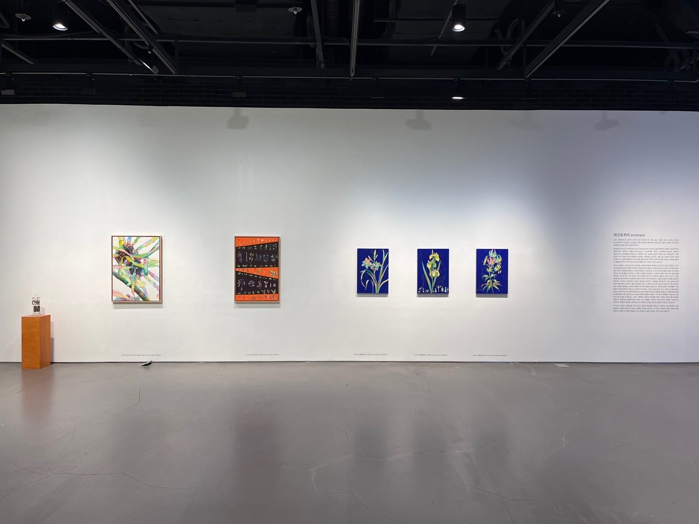 대구신세계갤러리는 환경의 날을 맞아 자연과 인류의 관계를 이야기하는 환경 테마 전시 <에코토피아 ecotopia>를 개최합니다. 최근 전세계적으로 급격히 증가한 이상 온도에 의해 가뭄, 홍수, 폭염, 한파 등 세계 곳곳에서 동시다발적으로 발생하는 재난들은 인류의 생존을 위협하며 인간의 모든 활동이 환경과 유기적으로 연결되어 있음을 절실히 깨닫게 합니다. 환경운동가 어니스트 칼렌바크(Ernest Callenbach)의 1975년 소설의 제목에서 유래한 ‘에코토피아’는 생태주의를 의미하는 에콜로지(ecology)와 이상세계를 뜻하는 유토피아(utopia)의 합성어로 생태주의적 이상세계를 의미합니다. 생태계의 자연 순환을 최상의 과제로 삼는 에코토피아 사회는 인간이 자연 속에서 다른 생명체와 공생하는 관계임을 강조하고, 균형 있는 생태적 질서와 대안을 모색합니다. 신세계 갤러리는 이번 전시를 통해 오늘날 자연과 인류의 관계를 고민하는 다양한 예술적 방식들을 탐구하고, 우리의 삶과 자연을 되돌아보는 시간을 나누고자 합니다. 자연의 생명력과 교감한 순간의 감각들을 2차원의 평면에 풀어내는 김지선과 자연이 전달하는 온기, 따스함을 털실이라는 매체로 구현하는 박현지의 입체 회화는 자연의 에너지로 공간을 가득 채워 내면의 힘과 자연의 소중함을 일깨우는 시간을 전달합니다. 윤희수는 도시와 자연의 경계를 주제로 수면 아래의 보이지 않는 풍경들은 포착하고, 미세한 소리들을 채집합니다. 인공과 자연의 경계 또는 중간지대를 의미하는 작가의 유리 부표 조각은 수면 아래를 연상시키는 번져가는 불빛과 바다의 소리가 시각과 청각을 동시에 자극하여 나를 둘러싼 환경과 새로이 관계 맺게 합니다. 식물과 공존하는 미래를 상상하여 작업하는 소수빈은 신생태계의 진화된 식물들을 직관적인 시각예술로 풀어냅니다. 비닐, 빨대와 같은 플라스틱을 에폭시 레진으로 덮은 추종완의 회화는 자본주의의 상징인 동시에 쓰레기가 되어 껍데기만 남은 도상들이 물화되고 소외된 현대인의 위기적 상황을 은유합니다. 편리한 문명의 이기(利器)가 각종 재앙과 위기로 돌아온 것입니다. 장한나의 오브제는 버려진 플라스틱이 인간 사회의 위기를 불러온 것과는 대조적으로 자연스럽게 생태 공간으로 흡수해버린 자연의 포용력을 보여줍니다. 풍화작용에 의해 암석화된 플라스틱인 뉴락(new rock)은 자연의 위대함과 더불어, 기후 위기의 피해자는 다름 아닌 우리 인간이 될 것임을 암시합니다. 그리고, 원예찬의 ‘멸종한 생명체를 대하는 자세’는 현생 인류의 문명을 박물관의 유물처럼 박제함으로써 지금의 위기 상황을 극복하지 못한 인류의 미래를 직설적으로 보여주며, 끊임없이 생성되고 버려지는 도시 생태계 사이클의 원인과 결과를 다시금 상기시킵니다. 전 지구적 문제로 자리매김한 기후 위기는 공동의 연대감을 바탕으로 개개인의 작은 변화들이 모여 실질적인 노력을 실천할 때 비로소 극복할 수 있을 것입니다. 본 전시가 인류와 자연의 관계와 이를 포괄하는 현재의 위기들에 책임을 느끼고, 변화하는 삶을 도모하는 계기가 되길 바랍니다. (출처 = 신세계갤러리)