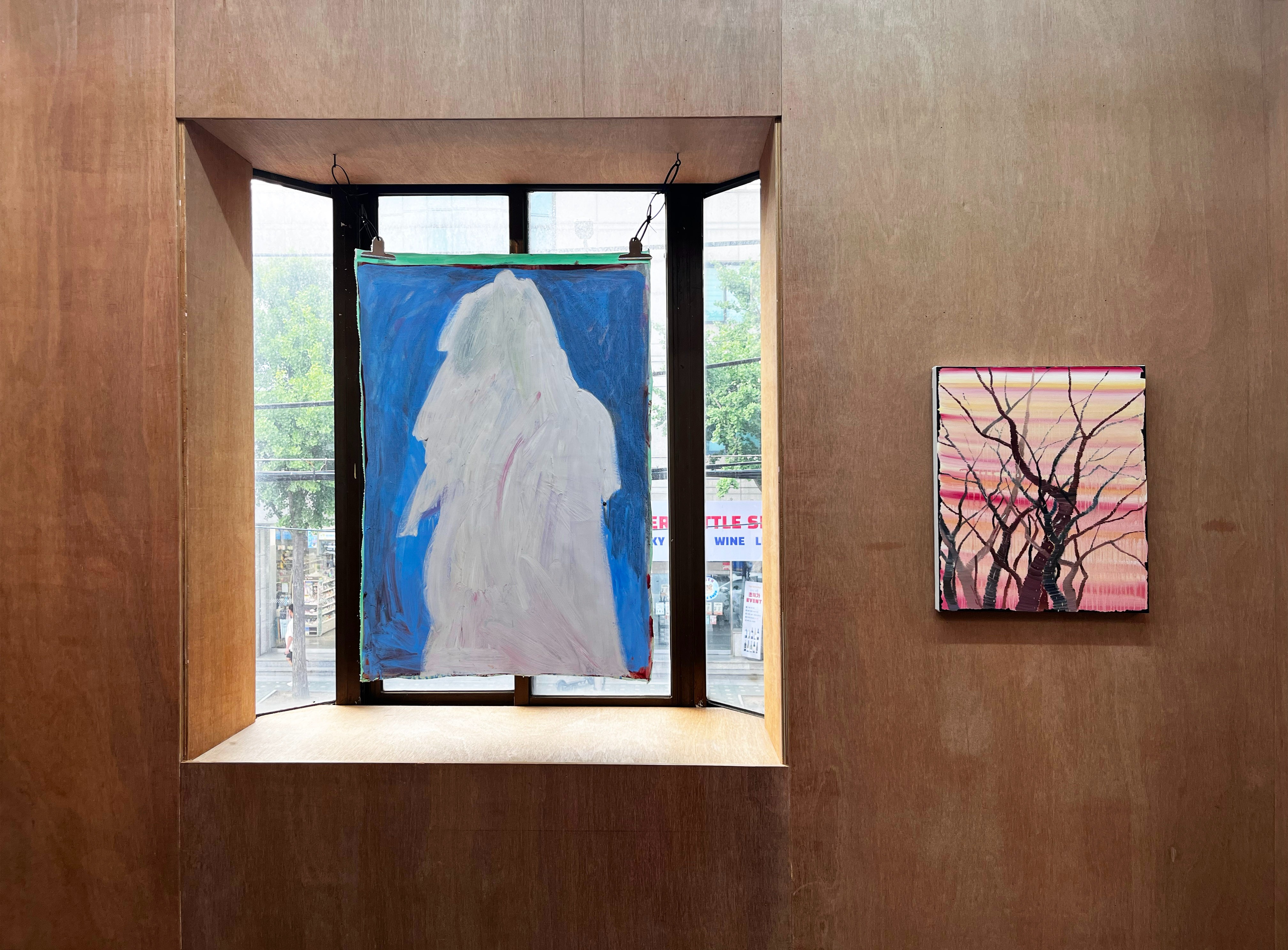 박지수 작가의 그림은 언뜻 보기에 조금은 과격하거나 거칠게 느껴질 수 있다. 과감한 붓질과 자유분방한 형태, 색감 또한 화려하다. 그 색의 조합은 꽤나 따스하며 말하고자 하는 메시지 또한 제법 귀엽고도 엉뚱하며 사랑스럽고 희망적이다. 동시에 개인의 존엄을 사회, 종교, 혹은 애꿎은 권력이 무너뜨리지 않게, 그들 혹은 우리에게 보내는 희망의 목소리이며 동시에 사회에게 보내는 일종의 탄원이자 선언 같은 힘을 지니고 있다. 김정인 작가의 작업 역시 첫 이미지는 차가움 이었다. 묘하게 냉소적인 색감과 느낌은, 어쩌면 잘리고 버려진 나무 같은 오브제나 풍경 속에서 느껴지는 연민이나 슬픔 같은 거였다. 조명 받지 못하는 어떤 생명체, 힘없고 나약한 현실 속 스스로의 모습의 반영, 찢어지고 움츠러든 현실이자 초월적인 현실의 반영 등을 끊임없이 해체와 재조합을 통해 더 큰 모습으로 더 빛나는 존재로 더 희망적인 형태로 드러나게 된다. 차현욱 작가의 그림에서 느껴지는 일종의 상상도는 환상 속 모습이자 동시에 가장 현실의 모습을 반영하고 있다. 조그맣게 숨겨진 인물도, 동물도, 현실 속 모습 역시도 모두 질문을 하는 동물인 인간이 인지하는 현실이자 사실적 풍경이다. 몽환적이며 친숙하다. 익숙하지만 묻고 싶다. 이 공간(집)으로 들어가도 되는지, 잠시 놀다가도 되는지 말이다.