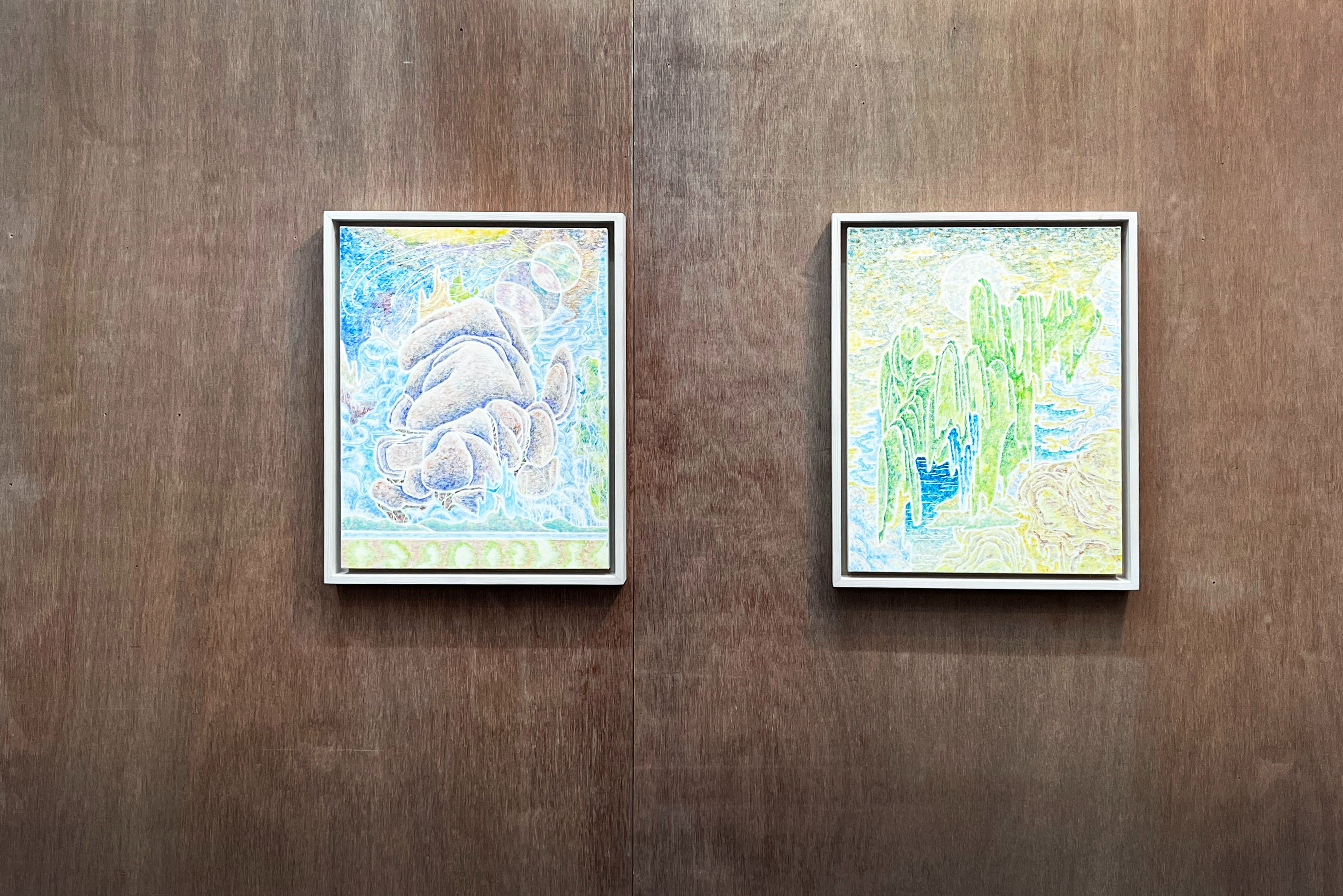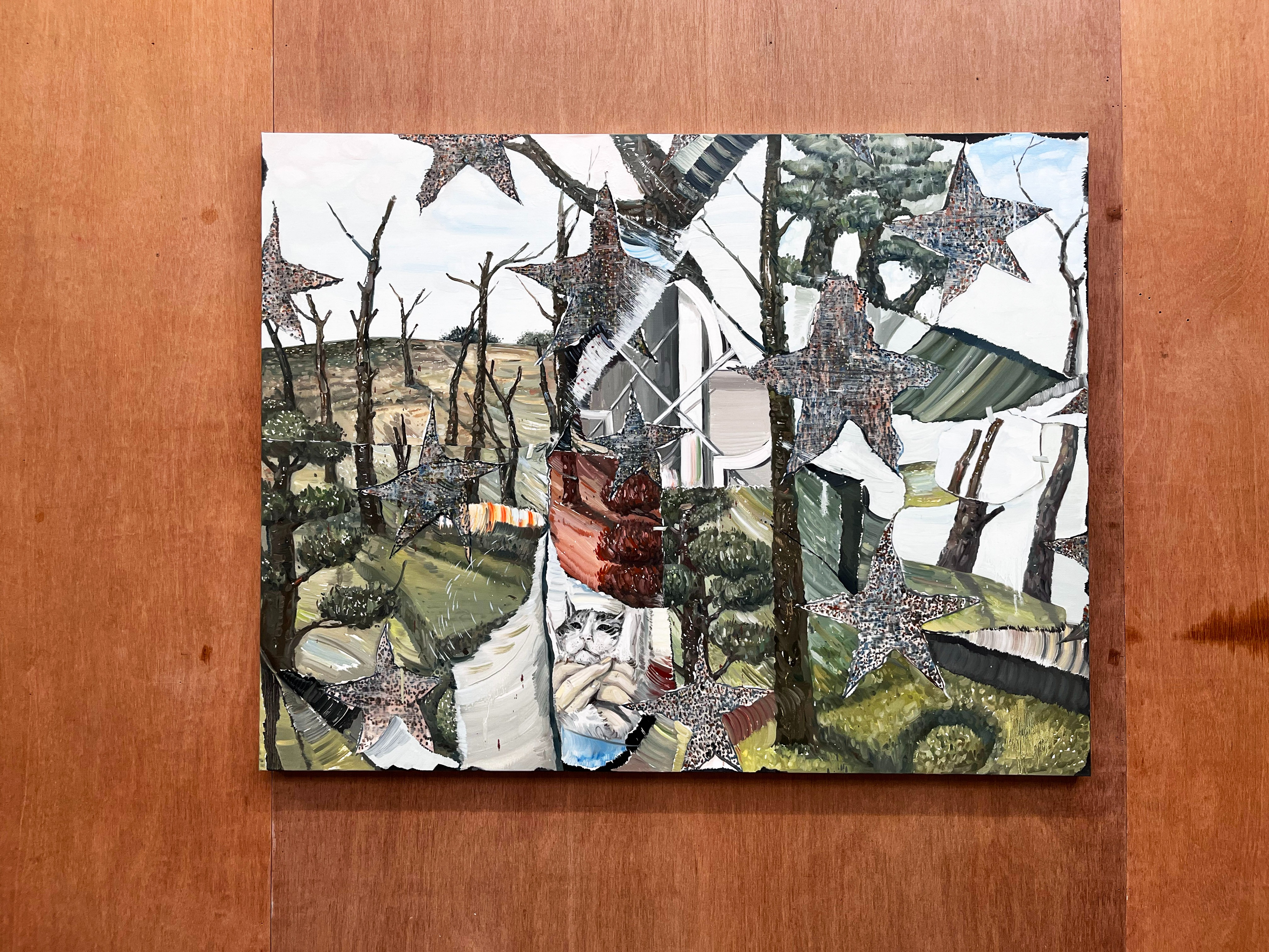 김정인 작가의 작업 도상 중 별의 모양은 제법 다양한 크기와, 선명한 듯 이미지와 이미지를 이어주는 역할을 한다. 마치 찢어진 종잇조각 같은 느낌의 별은 일상에서 익숙하게 만날 수 있는 장면 안에서 다른 차원으로 연결하는 포털(portal) 출입구 같았다. 치열한 사회 속에서 도망칠 수 있는 창문이자 동시에 사회 구성원 안으로 들어가는 입구일지 모른다. 차현욱 작가 작업에서 별은 은은하게 작은 점들로 많은 장면에서 볼 수 있다. 그의 작업에서 별은 내부이자 외부이며, 닿을 수 없는 상상의 존재 그럼에도 언제나 낮이나 밤이나 그곳에 있음을 알려주는 지표와 같다. 또한 인간이 인간의 중심으로 생각하는 내부(지구), 외부(우주)의 흔적(별과 달 등)을 통해 그 경계를 흐릿하게 하며 의문을 가질 수밖에 없는 존재로서 작용한다. 박지수 작가 작업에서의 별은 좀 더 직설적으로 보인다. 어렸을 때부터 흔하게 배우고 그리는 가장 정직한 별의 모양. 변형되지 않고, 다르게 해석하지 않는, 보이는 그대로이며, 정확히 별은 염원이자 기도이며 가장 밝게 빛나는 희망이 된다.