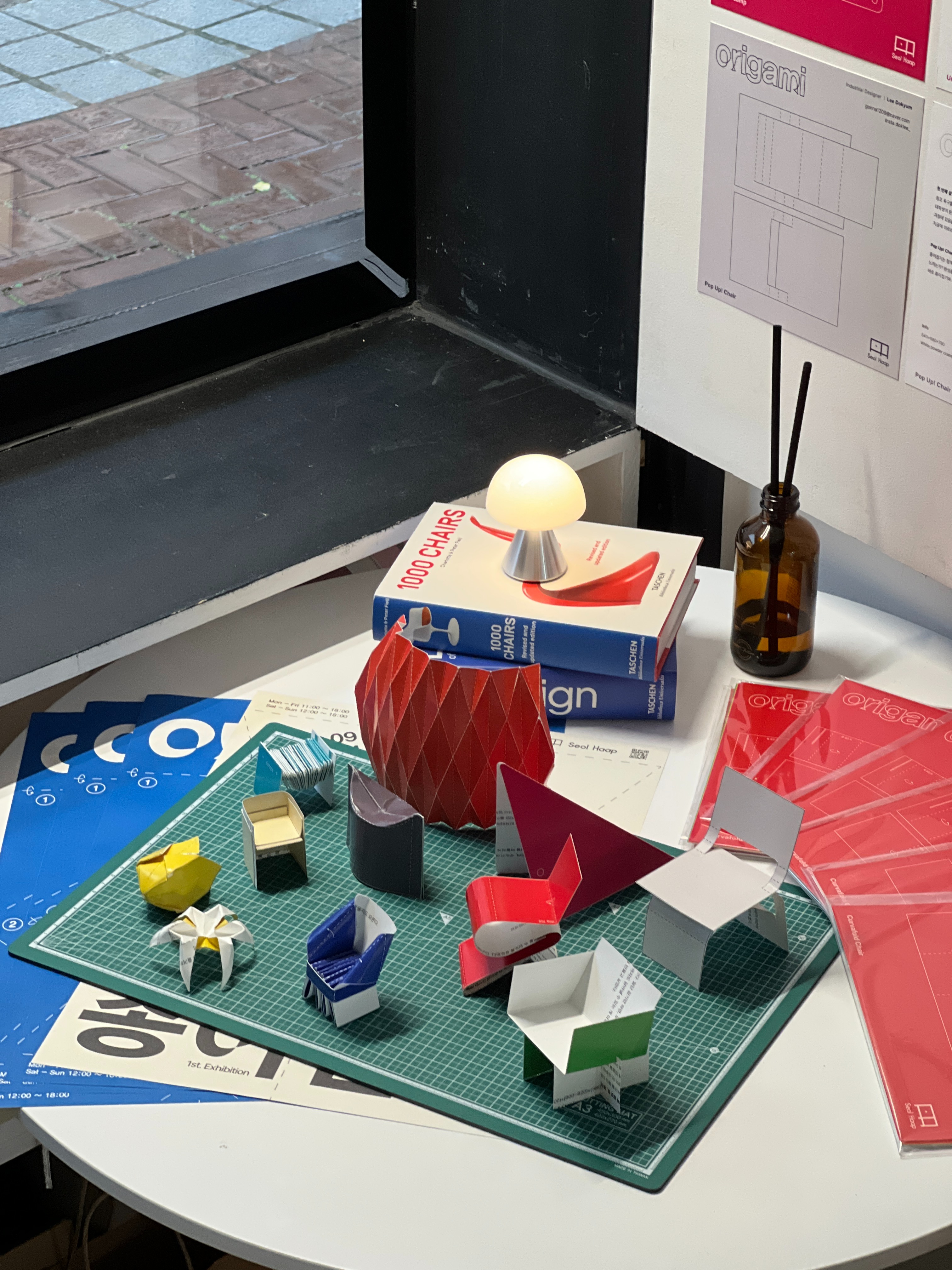 창조 욕구를 쫓아 디자인을 공부하는 우리는 종이접기라는 창작활동의 출발점을 공유하고 있다.대학생이 된 이후의 창작활동에서도 어릴 적 종이접기처럼 삐뚤어지고 찢어지는 반복적 시행착오를 거듭하며, 우리가 여전히 과정에 있음을 깨닫는다. 이런 경험들은 별안간 우리들이 어릴 적 종이접기 놀이를 통해 배웠던 입체화 작업을 떠올리게 했고, 지금에 이르러 '종이접기'를 다시 바라보고자 한다.